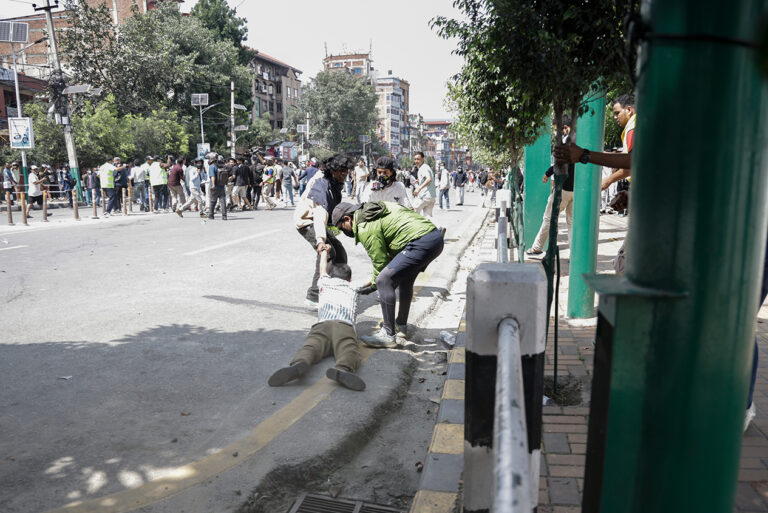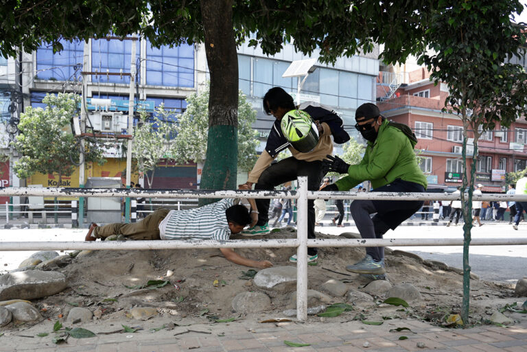 यसैबीच १ बजेर २४ मिनेटमा संसद भवनको हरियो गेटभित्रबाट प्रहरीले चलाएको रबरको गोलीले एक जना युवा मेरै आँखा अगाडि ढले। गेट छेउकै रुखमुनि ढलेका युवा घोप्टो परेका थिए, जसलाई दुई जना युवाले जसोतसो घिसार्दै सडकमा पुर्याएपछि अरु केही युवा साथ दिन आए।