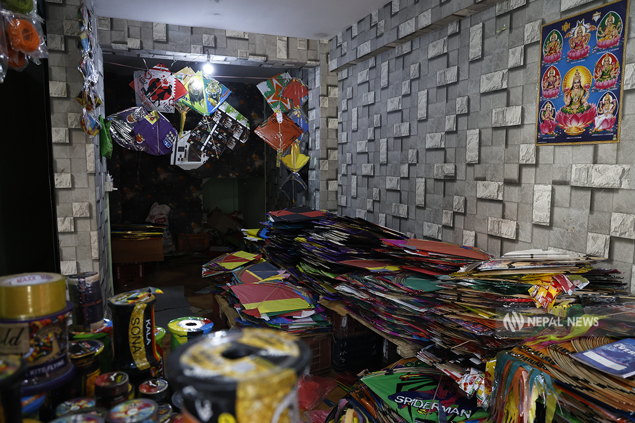 कालिमाटीमा रहेको चंगा पसलमा विभिन्न प्रकारका चंगा। तस्बिर : बिक्रम राई/नेपालन्युज।