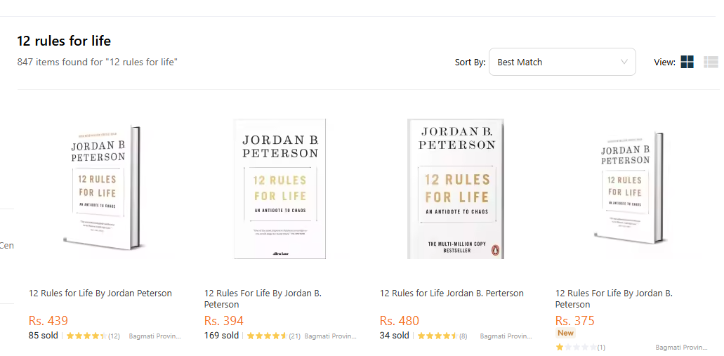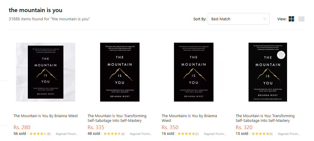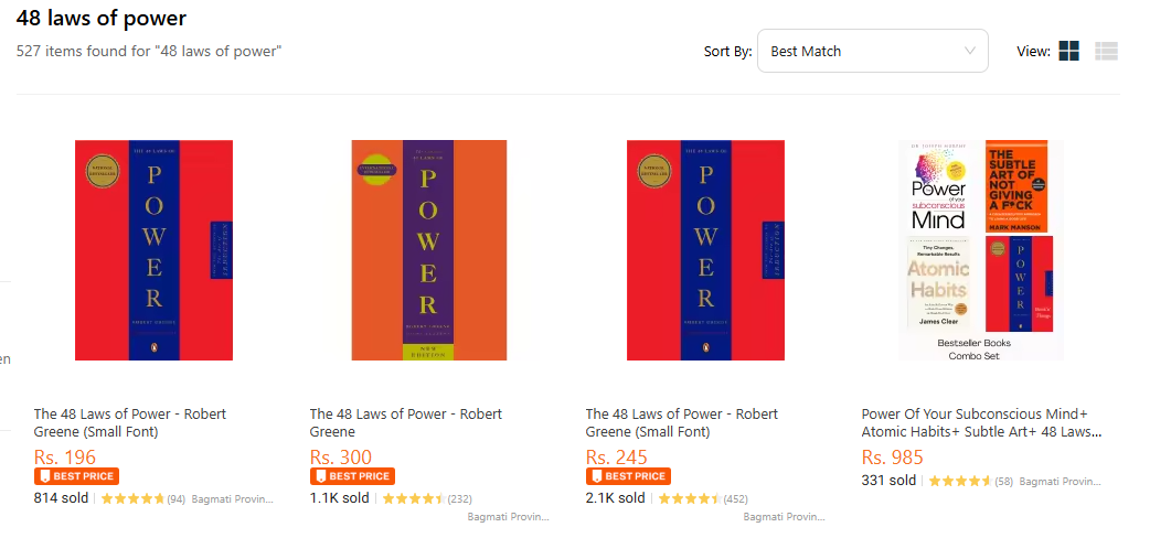अनलाइन सपिङ साइट दराजमा एउटै किताबका फरक फरक मूल्य