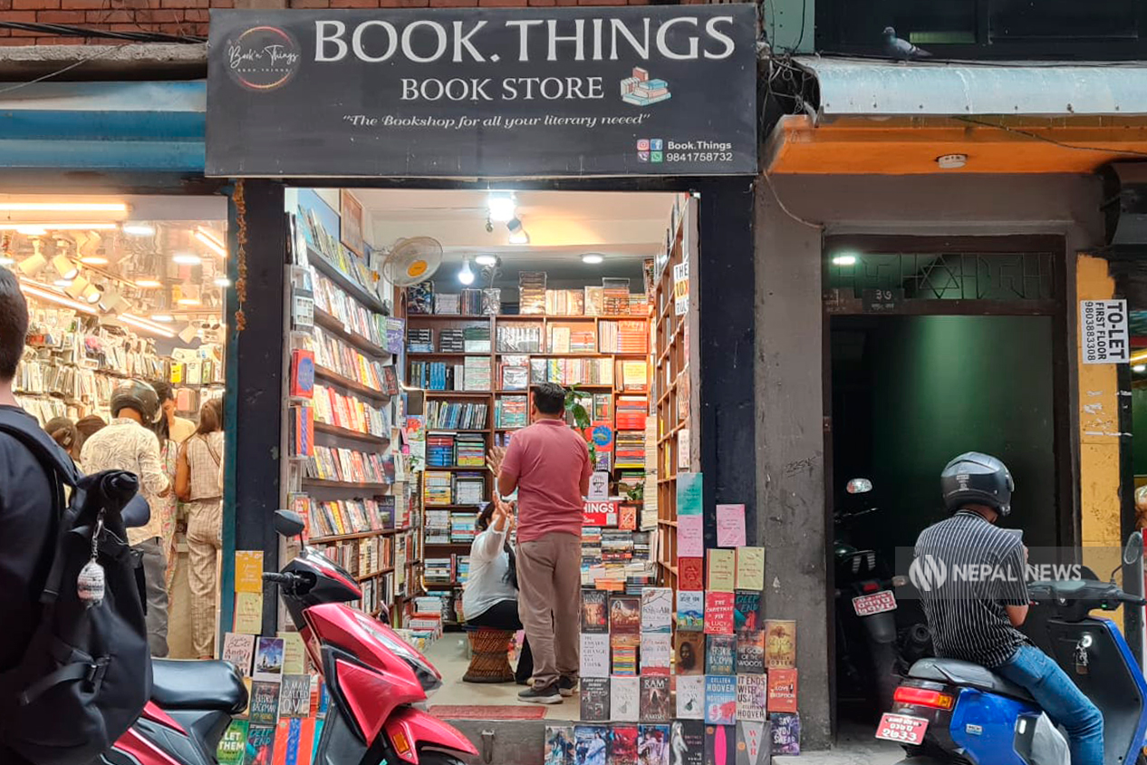 ओमबहालबाट फ्रिक स्ट्रिट छिर्ने बाटोमा रहेको पाइरेटेड किताब बेच्ने बुक डट थिंग्स। तस्बिर : प्रभाकर गौतम/नेपालन्युज