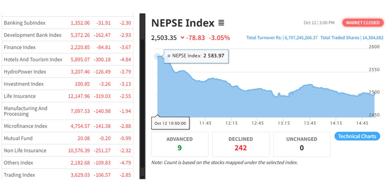 राताम्मे बनेको नेप्सेमा सबै समूहका सूचक घटे। जसमा होटेल तथा पर्यटन समूह सबैभन्दा धेरै ४.८४ प्रतिशत घट्यो। त्यस्तै अन्य समूह ४.७९ प्रतिशत घट्यो।
