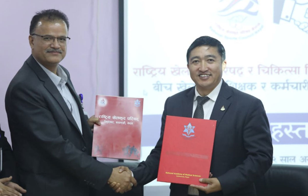 काठमाडौं। नेपालका राष्ट्रिय तथा अन्तर्राष्ट्रिय खेलाडी र प्रशिक्षकले चिकित्सा विज्ञान राष्ट्रिय प्रतिष्ठान (नाम्स), वीर अस्पतालबाट स्वास्थ्य सेवा र उपचारमा विशेष छुट पाउने भएका छन्।