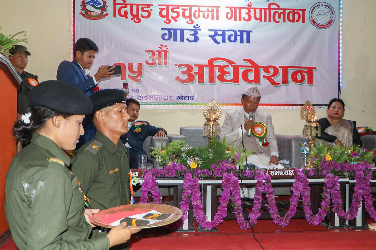 खोटाङको दिप्रुङ चुइचुम्मा गाउँपालिकाको गाउँ सभामा गाउँ प्रहरी। तस्बिर : गाउँपालिकाको फेसबुक पेज