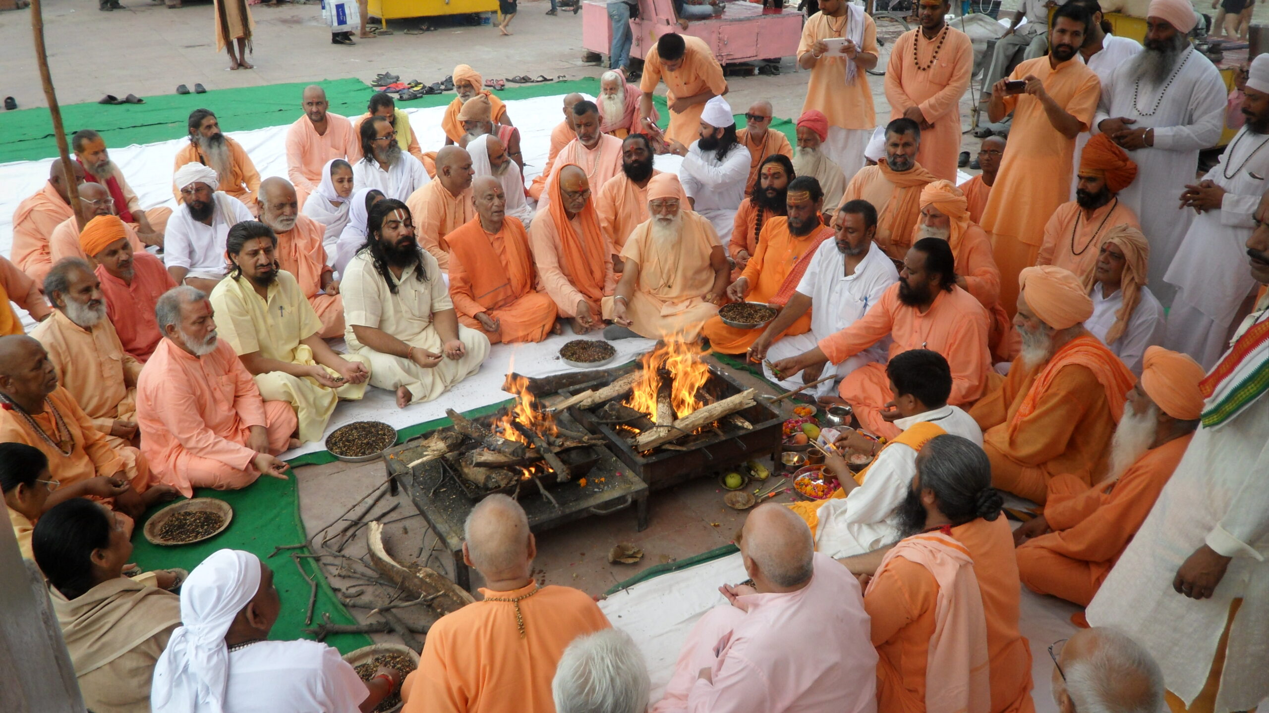 उत्तराखण्ड घटनामा मारिएका र बेपत्ताहरूको आत्माको शान्तिका लागि हरिद्वारका साधुसन्तले सोमबार गंगा किनारमा गरेको यज्ञ। तस्बिर : श्याम भट्ट।