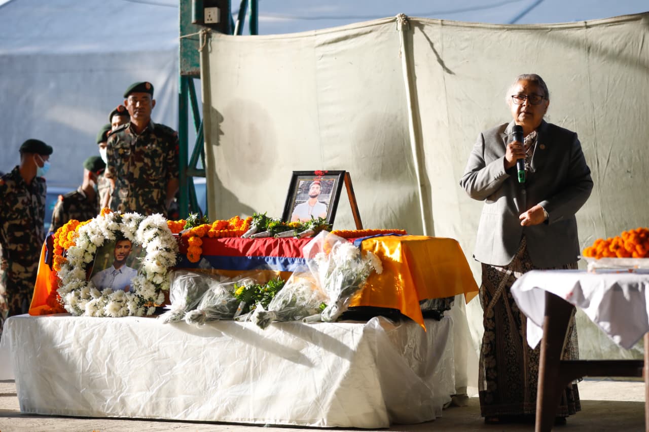 विपिन जोशीको शव श्रद्धाञ्जलीसभातर्फ लैजाँदै नेपाली सेना। तस्बिर सौजन्य : सुजन गुरुङ