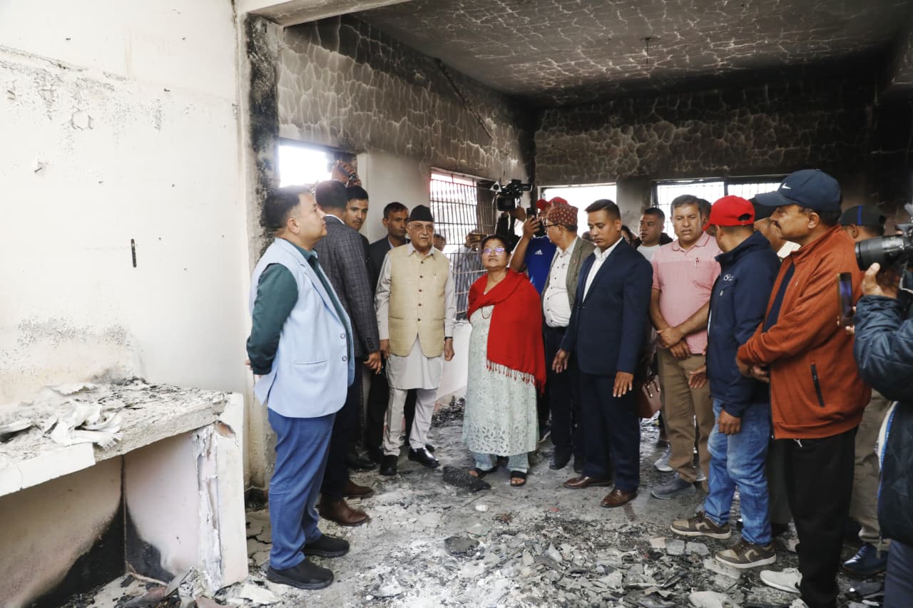 जलेको घर अवलोकनपछि ओली भन्छन्- आगजनी भइसकेको विषय अब सम्झेर बस्न चाहँदैन