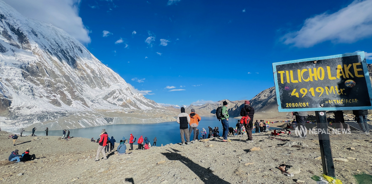 तिलिचो तालमा पर्यटक। सबै तस्बिर : शिखा श्रेष्ठ/नेपालन्युज
