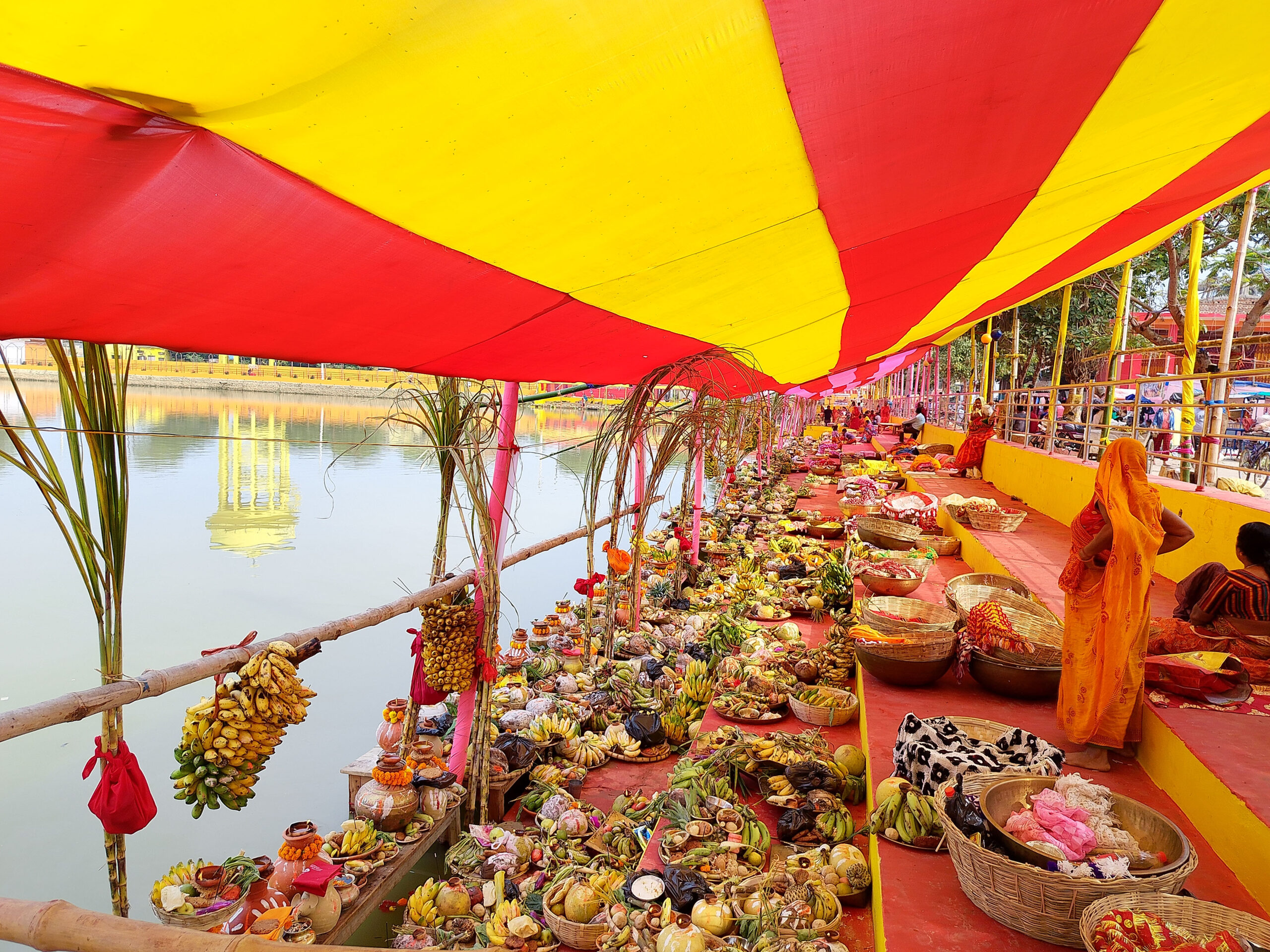 छठ मनाउन सम्पूर्ण मिथिलावासी आज (सोमबार) आ-आफ्ना घरमा गुलियो परिकार ठकुवा, भुसवा, खजुरिया, पेरुकियाजस्ता पकवान र विभिन्न फलफूल तथा मुला, गाजर, बेसारको गाँहो, भोगटे, ज्यामिर, नरिवल, सुन्तला, केरा नाङ्लो, कोनिया, सरवा, ढाकन, माटोको हात्ती, ढकियामा राखी परिवारका सम्पूर्ण सदस्य विभिन्न भक्ति एवं लोकगीत गाउँदै निर्धारित जलाशय नजिक बनाएको छठ घाट पुगेका थिए।