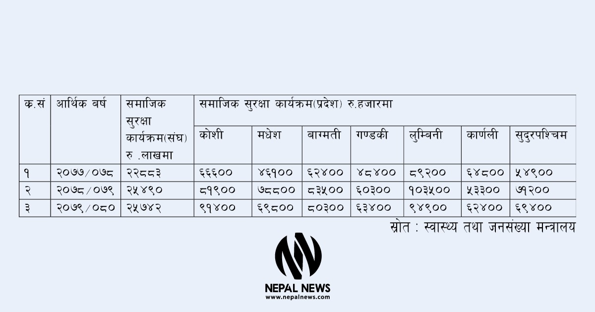 त्यस्तै, आव २०७७/७८ मा नसर्ने रोगका बिरामीलाई सहायता रकम दिँदा जम्मा दुई अर्ब १४ करोड २२ लाख ४१ हजार ७९६ रुपैयाँ खर्च भएको थियो।