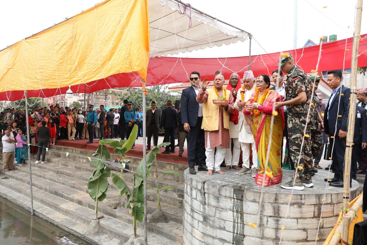 राष्ट्रपति पौडेलले पशुपति क्षेत्रस्थित गुह्वेश्वरी मन्दिरअघि बागमतीकिनार गौरीघाटमा तयार गरिएको छठ पूजास्थलमा पुगेर सोमबार छठी माताको पूजा अर्चना गरेको उनको स्वकीय सचिवालयले जनाएको छ। राष्ट्रपति पौडेल र पत्नी सविताले पूजास्थलमा अस्ताउँदो सूर्यलाई अर्घदान गरेका छन्।