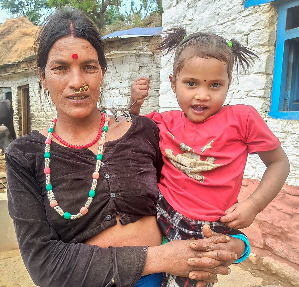 कालीकोटको खाँडाचक्र नगरपालिका–१ कि जमुना सुनार र उनकी आमा। कार्यक्रमको शुभारम्भ गर्दा पहिलोपटक जमुनाको खाता खोलिएको थियो। तस्बिर सौजन्य : प्रकाश पन्त