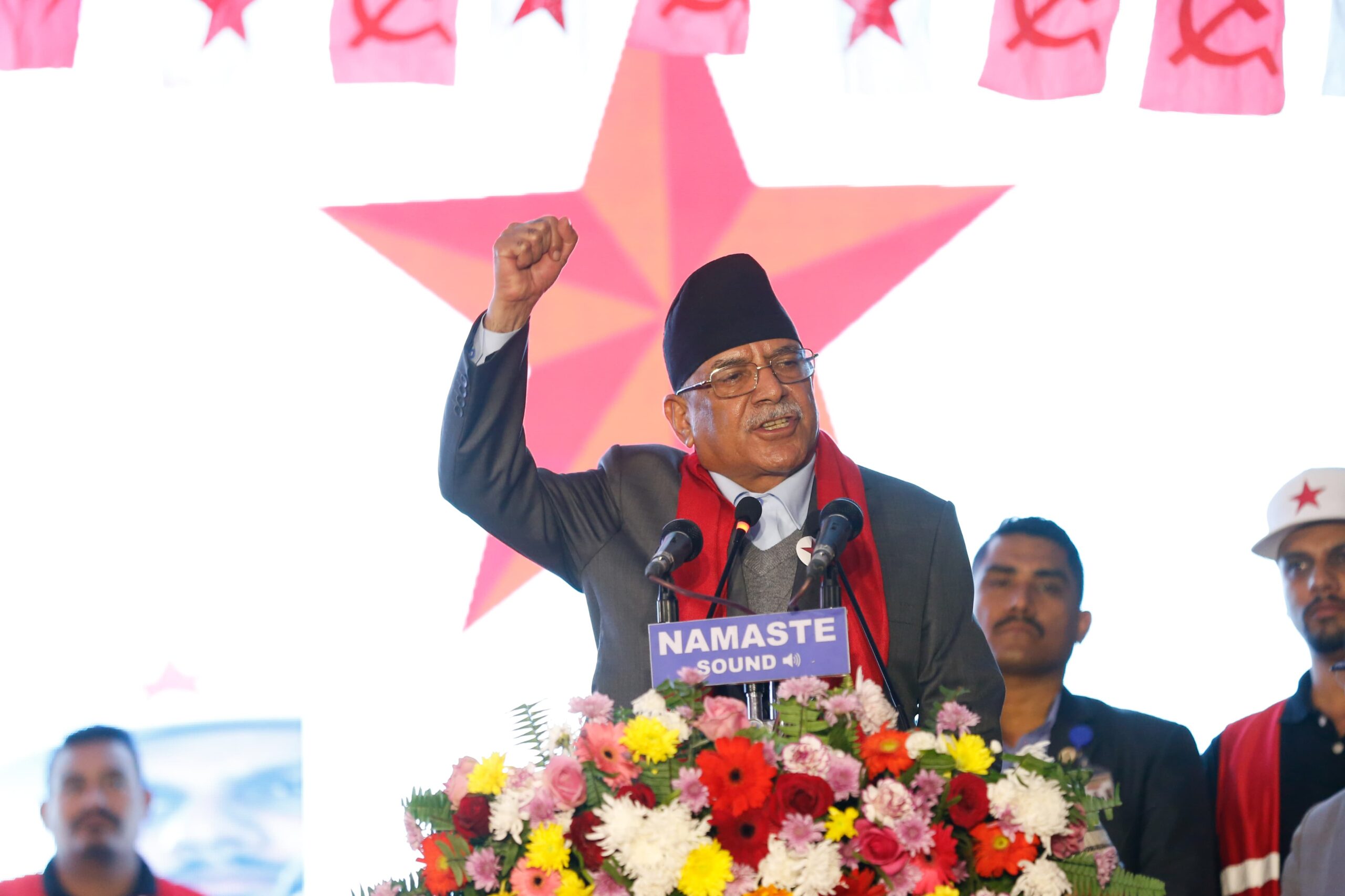 वाम एकता घोषणासभामा पुष्पकमल दाहाल। तस्बिर : नेपाल फोटो लाइब्रेरी