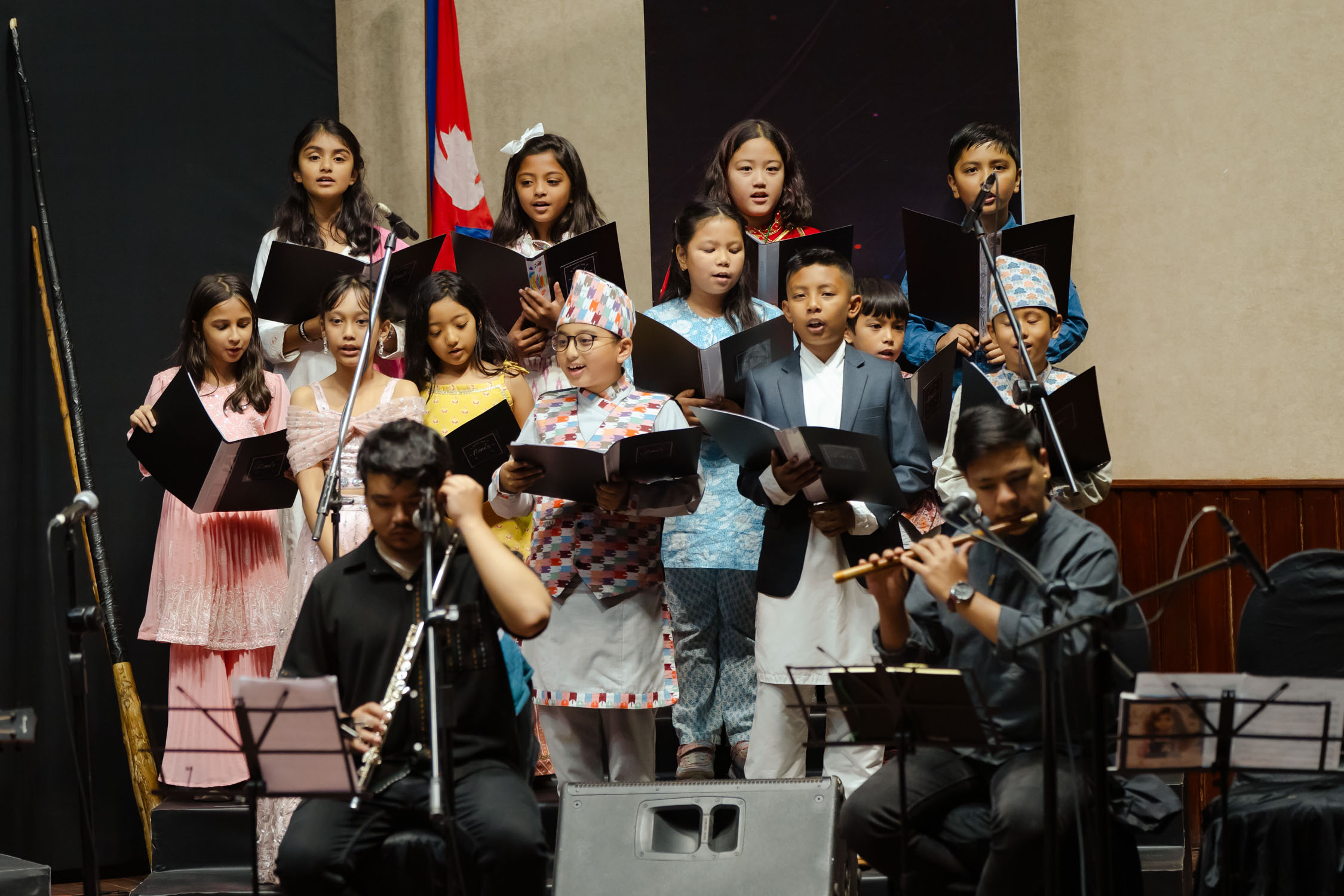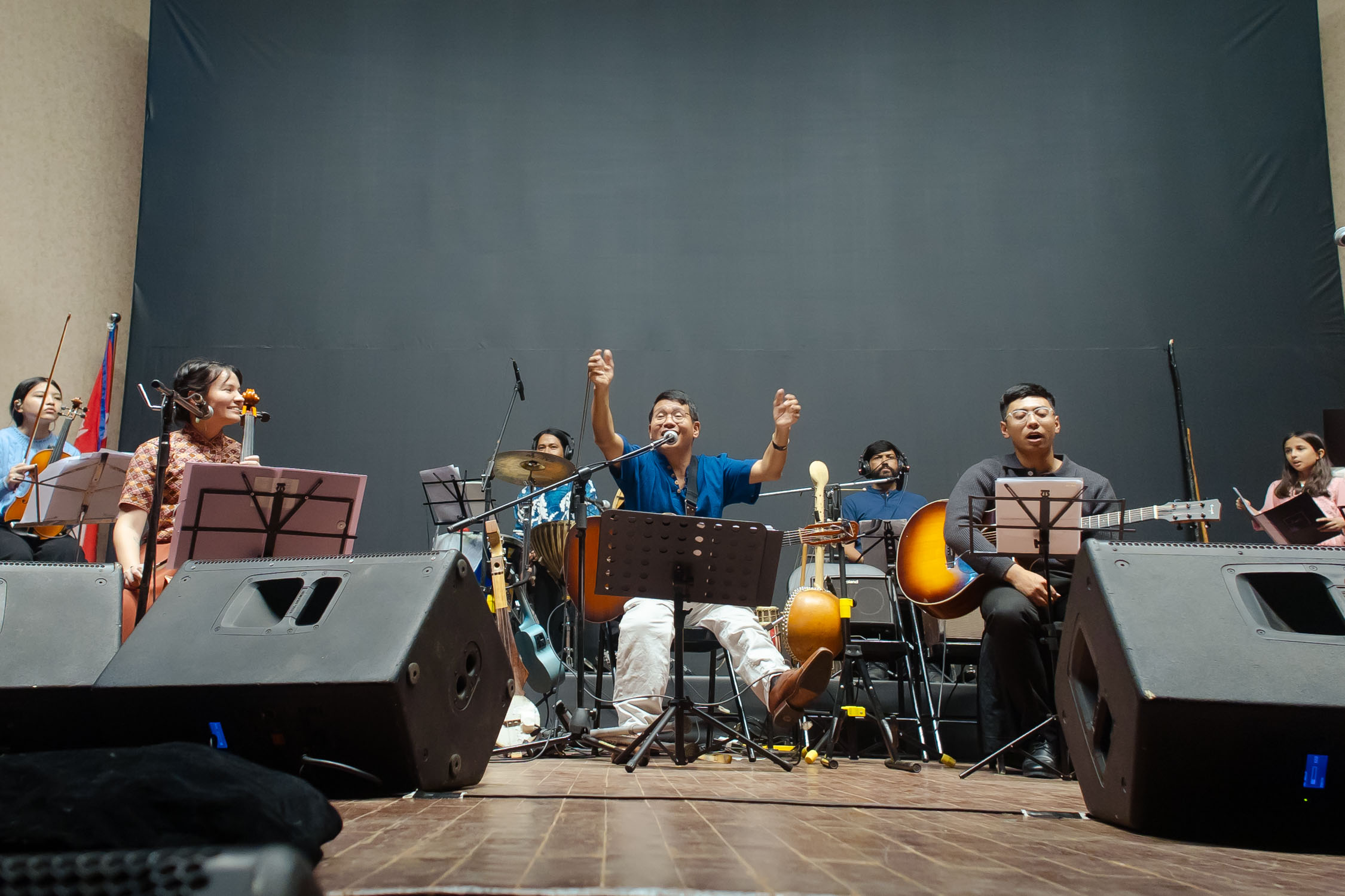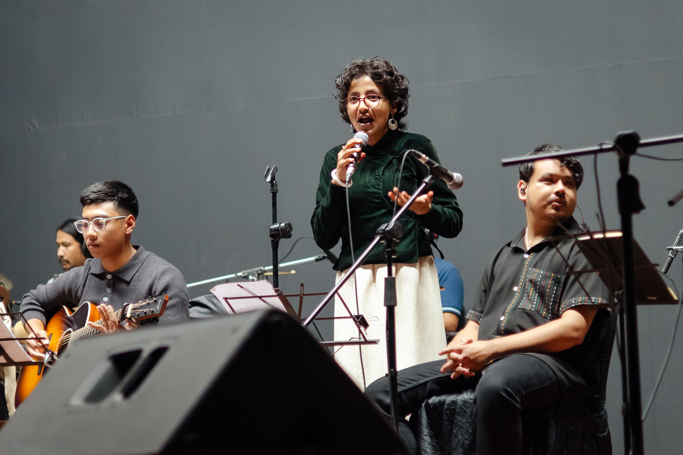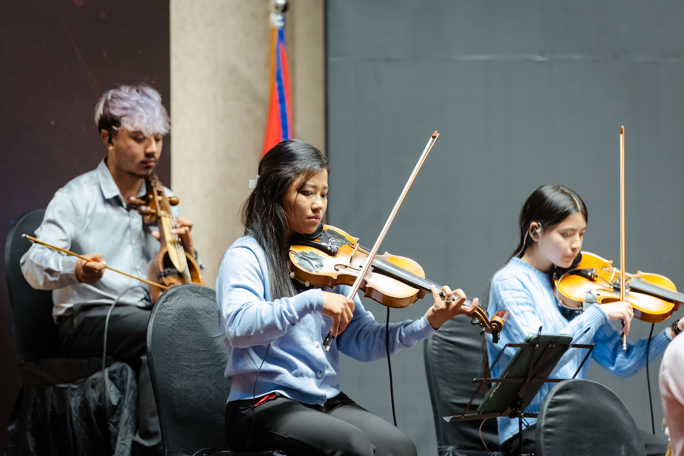 मञ्चमा झन्डै २५ संगीतज्ञ मुरलीदेखि सारंगी, मादलदेखि बाँसुरी, ड्रमसेटदेखि स्ट्रिङ सेक्सनसम्म सबैले एकै स्वरमा संगीतकारको दृष्टि र भावलाई जीवन्त बनाए। गंगा थापासँगै एइलिन थापा : सेलो, स्वर, फोबी श्रेष्ठ : भायोलिन, ईभा महर्जन : सेलो, रोश्ना शाक्य: भायोलिन, रवि श्रेष्ठ : डबल बेस, स्वर्णिम महर्जन : बाँसुरी, रुपेश शाक्य : बाँसुरी, फ्लुट, परास सुवेदी : मादल, सिजन महर्जन : पर्कसन (तालवाद्य), जोसेफ श्रेष्ठ : गितार, अश्विन : सारंगी, धनबहादुर गुरुङ : सहनई, स्टिभ अरास्तिया : क्ल्यारिनेट र गायक/स्वर कलाकारहरू, शिङ्ग्रोन पुन, पवन गिरी, अंशु कार्की, रेश्मा पुन, समीक्षा चौधरी, सन्तोष राना, पार्वती थापा, श्रुति प्रधानसँगै बालबालिकाहरुले पनि प्रस्तुति दिएका थिय।