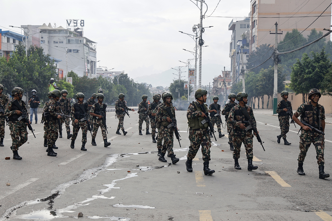 जेन-जी आन्दोलनको पहिलो दिन २३ भदौमा सडकमा सेना। तस्बिर : बिक्रम राई