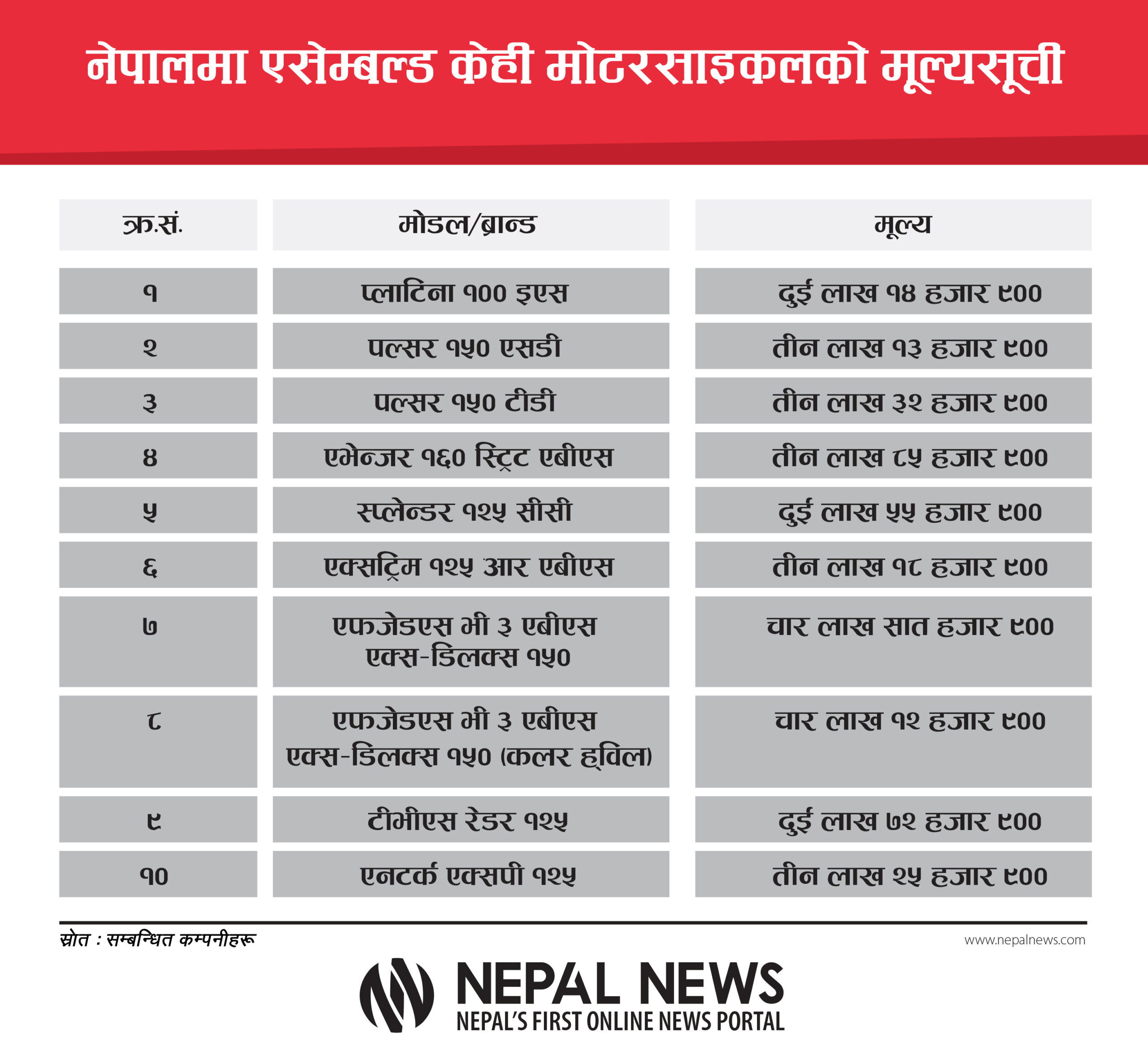 रोयल एन्फिल्डमा भने एक लाखसम्म मूल्य सस्तो भएको दाबी टीजी अटो ग्रुपका निर्देशक मेघराज पौडेलको छ। “रोयल एन्फिल्डको कुनै पनि मोटरसाइकल विदेशबाट आउँदैन। सबै नेपालमै एसेम्बल हुने हो,” उनी भन्छन्, “ग्राहकप्रति समर्पित भएर मूल्य निर्धारण गरिरहेका छौँ। सरकारले दिएको सहुलियतलाई पनि उत्तिकै ध्यान दिएका छौँ।”