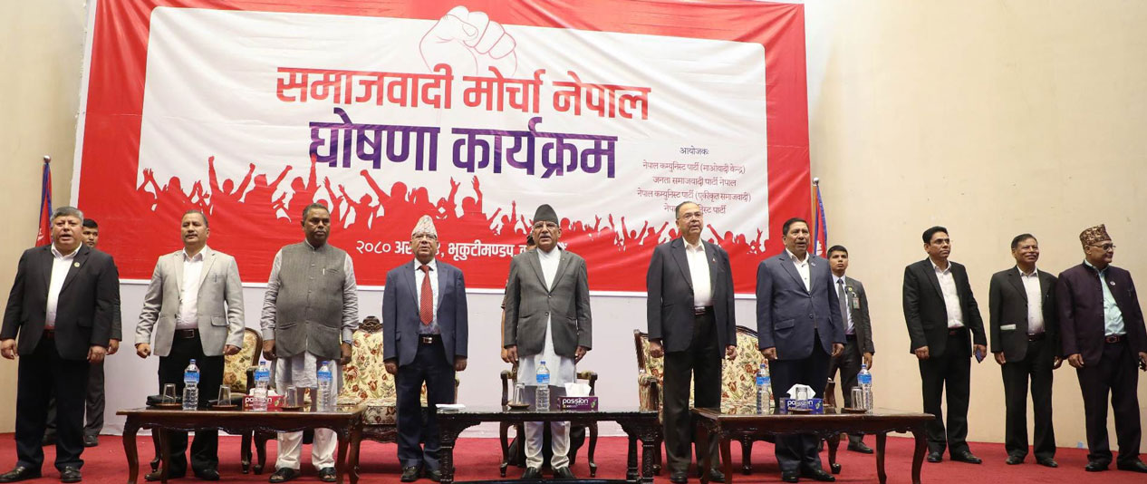 माओवादी केन्द्र, नेकपा एकीकृत समाजवादी, जसपा नेपाल र विप्लव नेतृत्वको नेकपासहित मिलेर ४ असार २०८० मा समाजवादी मोर्चा गठन गरिएको थियो। मोर्चाको उद्देश्य वामएकता र साझा समाजवादी धार निर्माण गर्ने थियो।