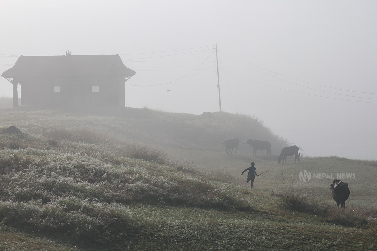 कुहिरोको त्यही पर्दा उघार्दै यसै साताको एक बिहान ललितपुरको खोकना पुग्दा कोही ‘पेट घटाउन’ मर्निङ वाक गरिरहेका थिए। कोही पेट पाल्न काँधमा खर्पन बोकिरहेका थिए। खोकनाकै सिकाली मन्दिर रहेको ठूलो चौरमा एक बालक भने भैँसी चराइरहेका थिए।
