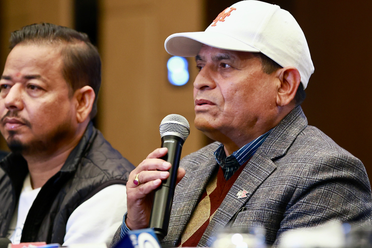 पत्रकार सम्मेलनमा अध्यक्ष चतुरबहादुर चन्द।