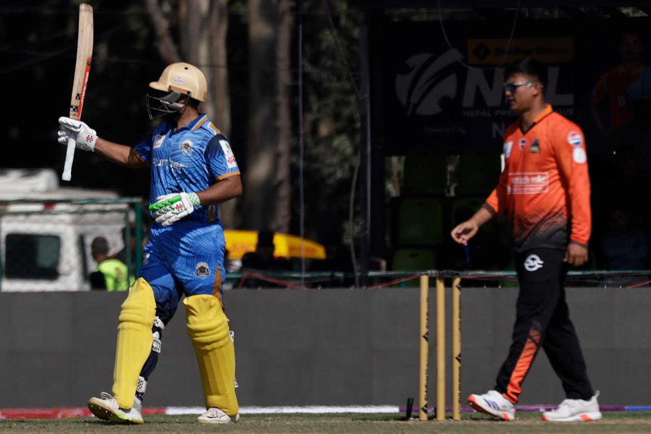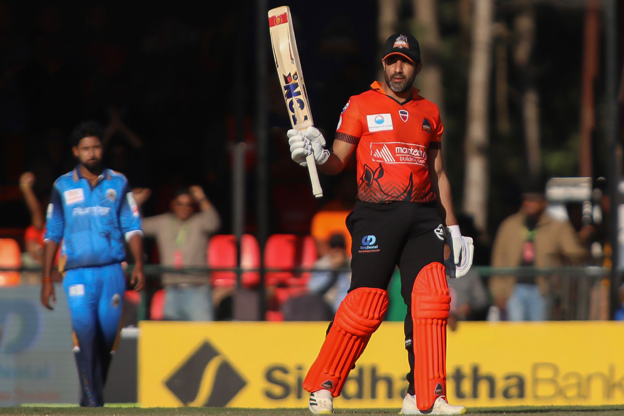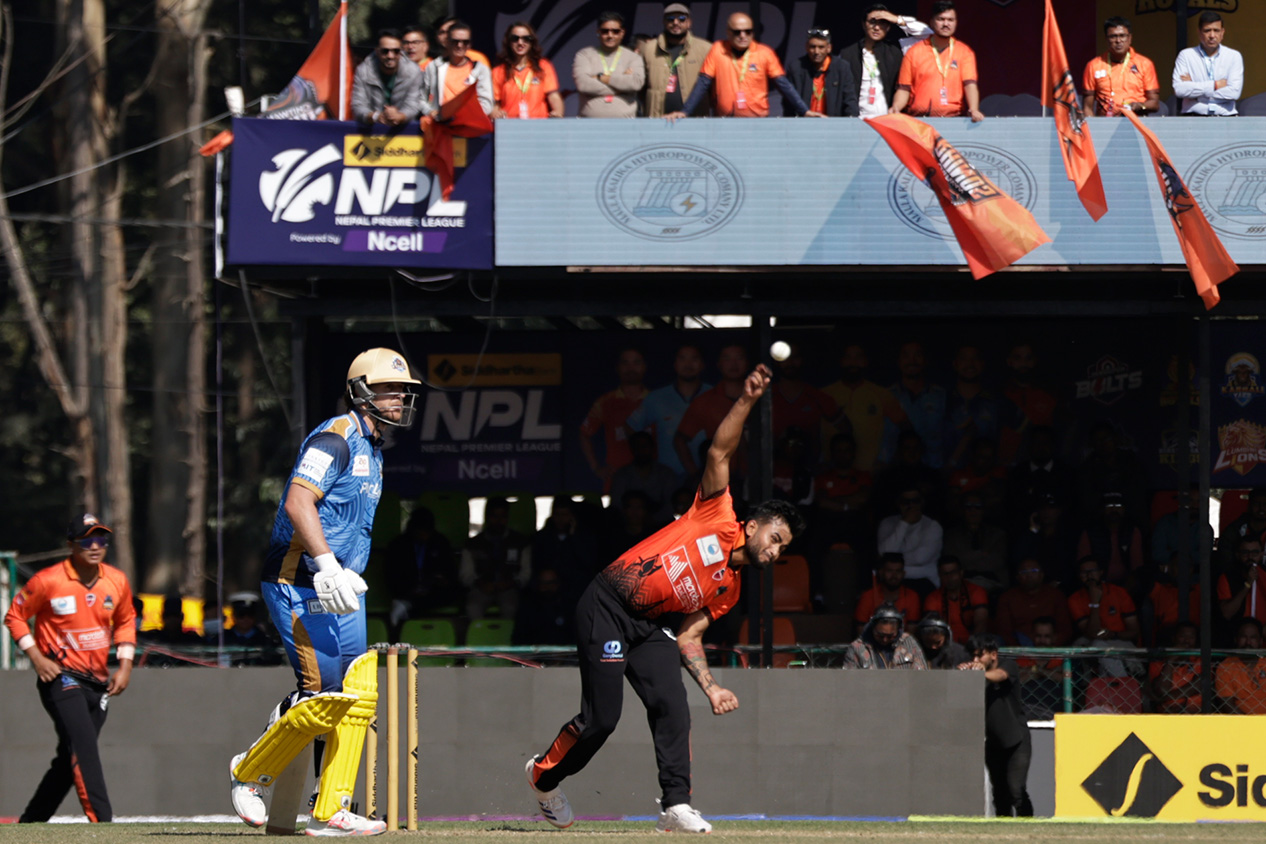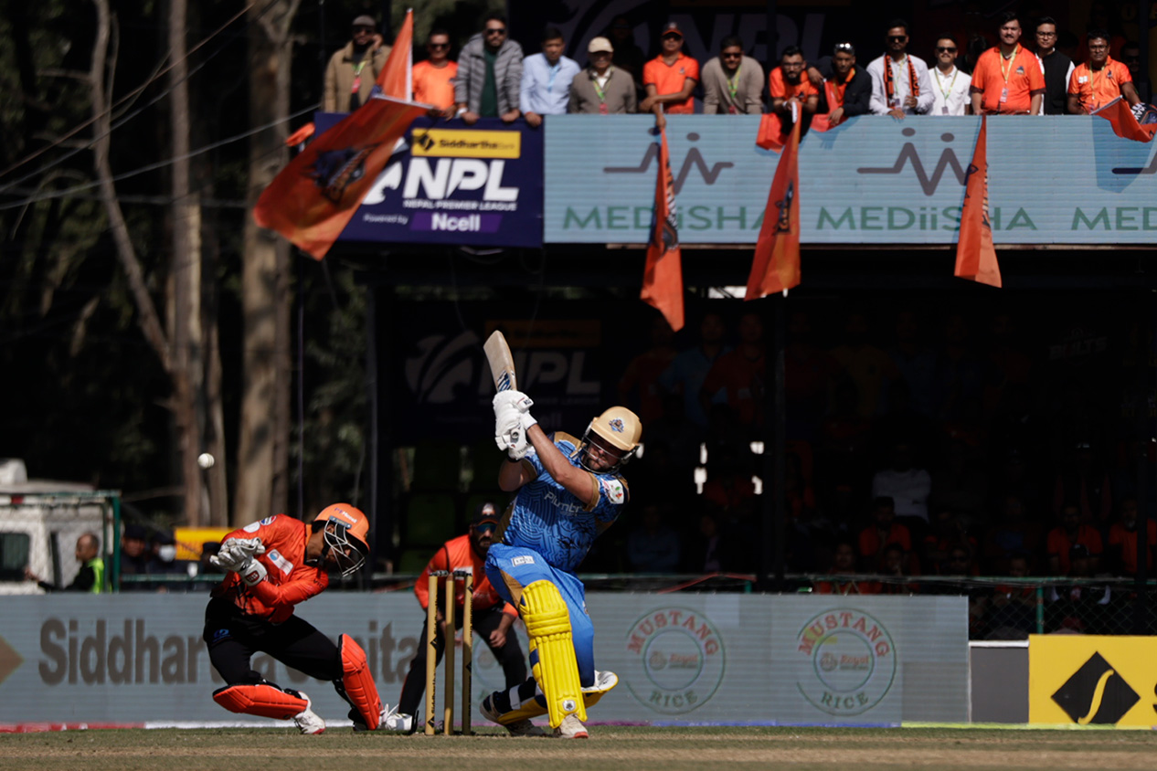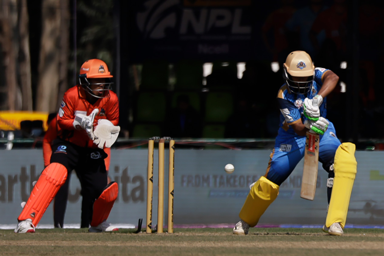 एनपीएलमा कर्णाली याक्स र चितवन राइनोजबीचको भिडन्त। तस्बिर : बिक्रम राई