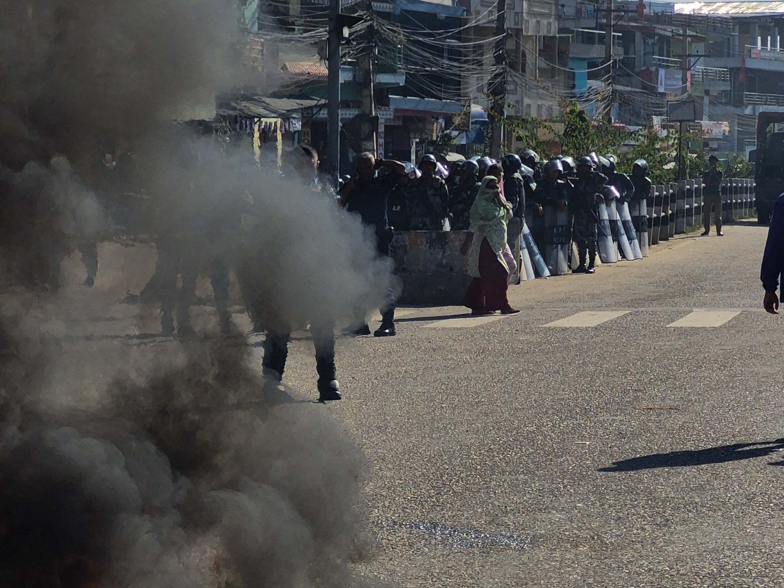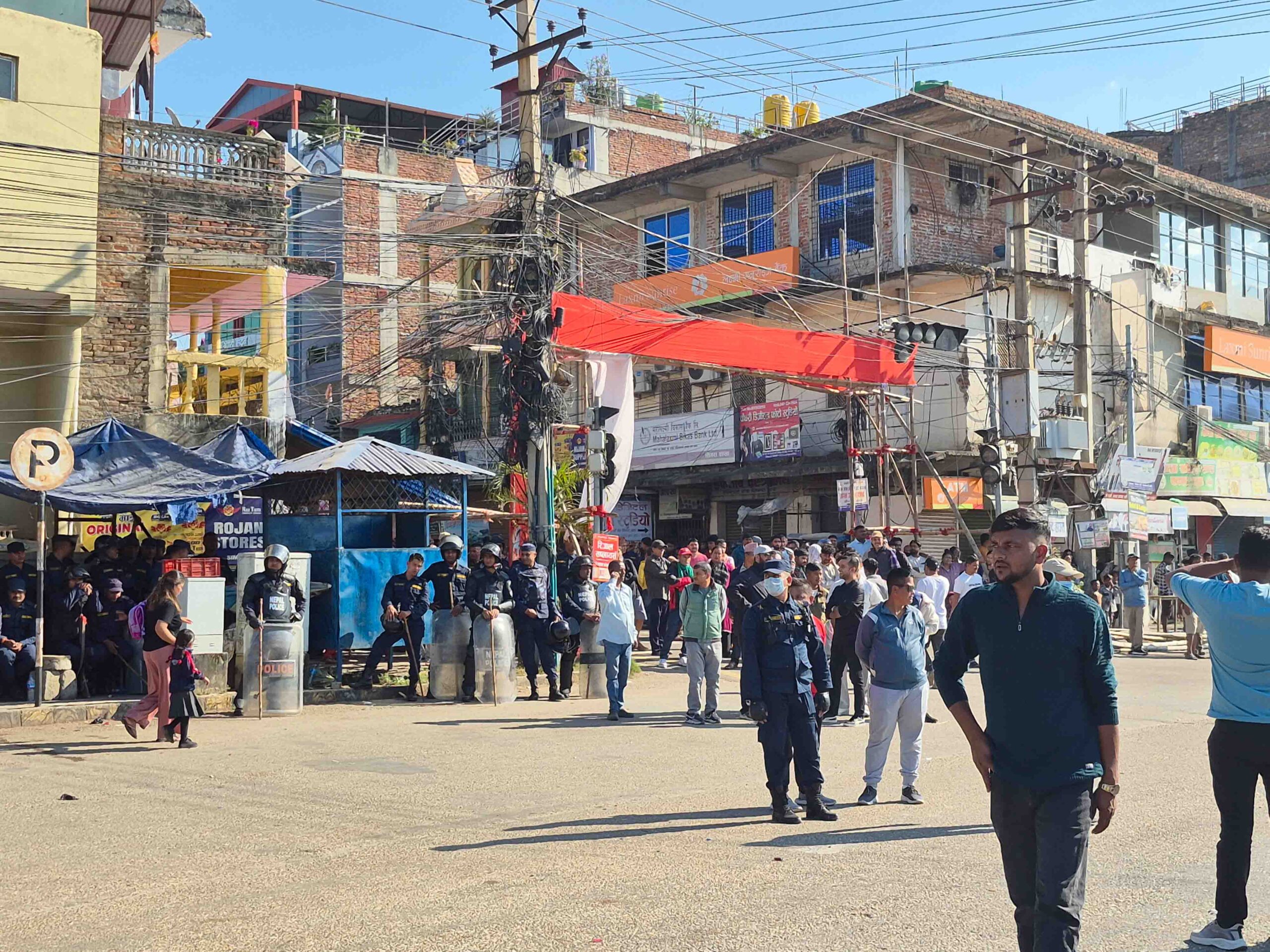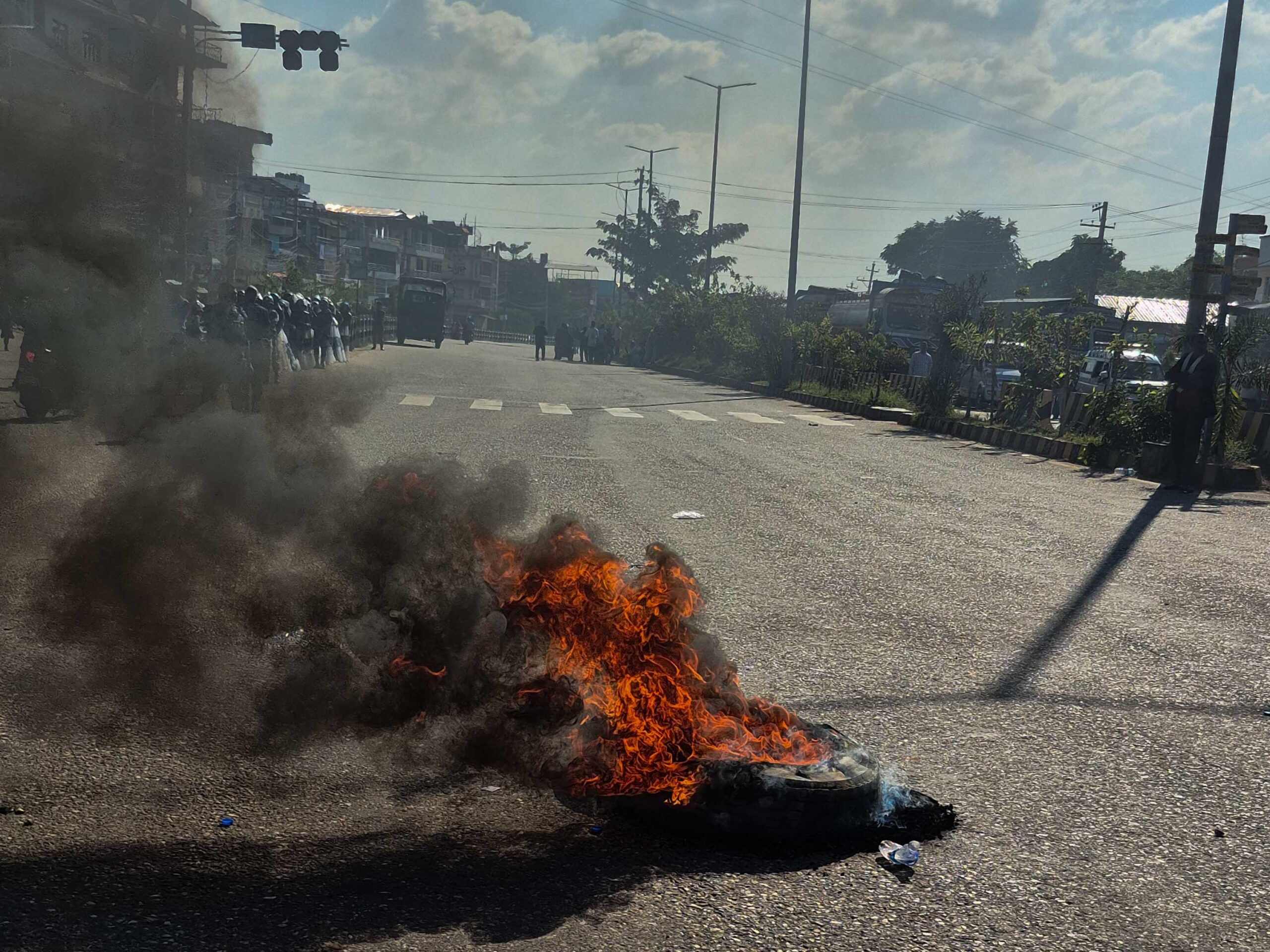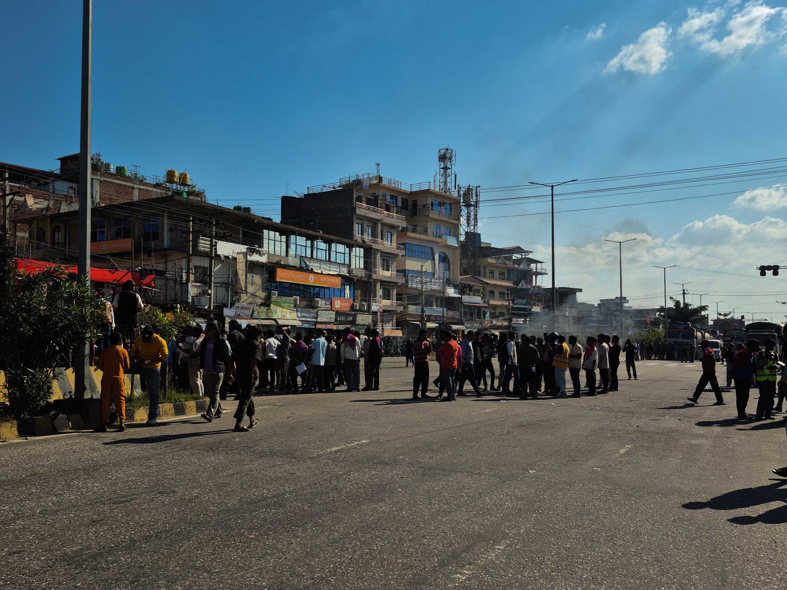 प्रदर्शनमा उत्रिएका जेन-जी समूहले सडकमा टायर बालेका छन्। प्रदर्शनकारी र एमाले कार्यकर्ताबीच झडप हुँदा यस क्षेत्रको अवस्था तनावग्रस्त बनेको छ।