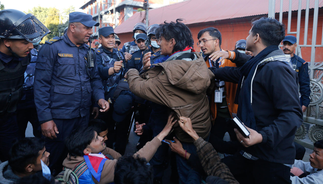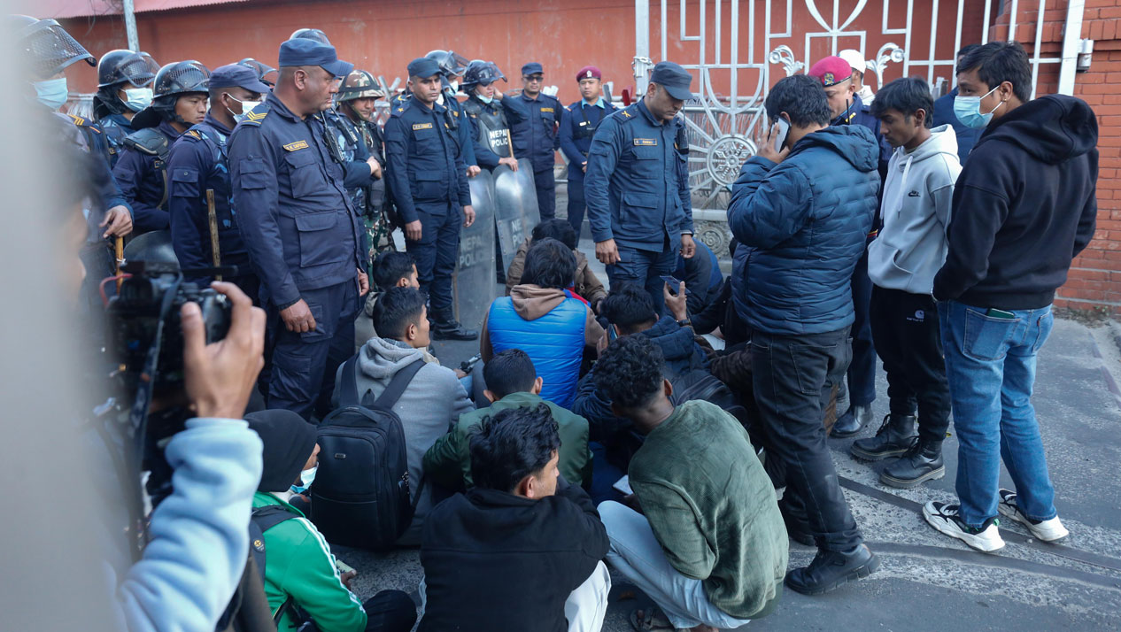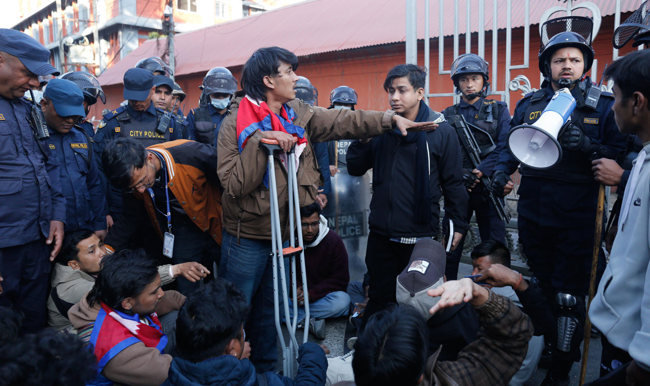 काठमाडौँ। अर्थमन्त्री रामेश्वरप्रसाद खनाललाई भेट्नका लागि सिंहदरबार जाँदा प्रवेश नपाएपछि जेन-जीका घाइतेहरुले सिंहदरबारको दक्षिण गेटबाहिरै धर्ना दिएका छन्।