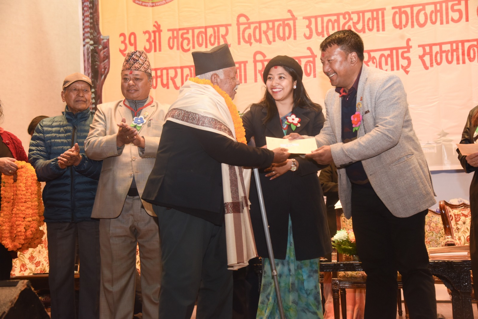 ३१औँ महानगर दिवस २०८२ का अवसरमा आज (आइतबार) राष्ट्रिय सभागृहमा आयोजित समारोहमा उपप्रमुख सुनीता डंगोल, सम्पदा तथा पर्यटन समिति संयोजक आशामान संगत, समितिका सदस्यहरु, कार्यपालिकाअन्तर्गतका समितिका संयोजकहरुले सम्मान गरे।