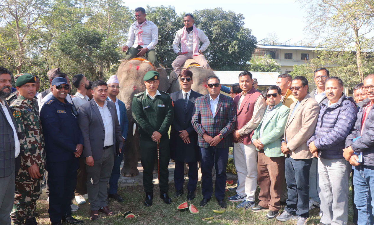 काठमाडौँ। चितवन राष्ट्रिय निकुञ्जमा हुर्किएका खगेन्द्रप्रसाद र रुद्रकली हात्तीलाई कतार पठाइँदै छ। चितवन राष्ट्रिय निकुञ्जमा हुर्काइएका दुवै हात्तीाई सौराहामा सोमबार विधिवत् कार्यक्रम गरी बिदाइ गरिएको हो।