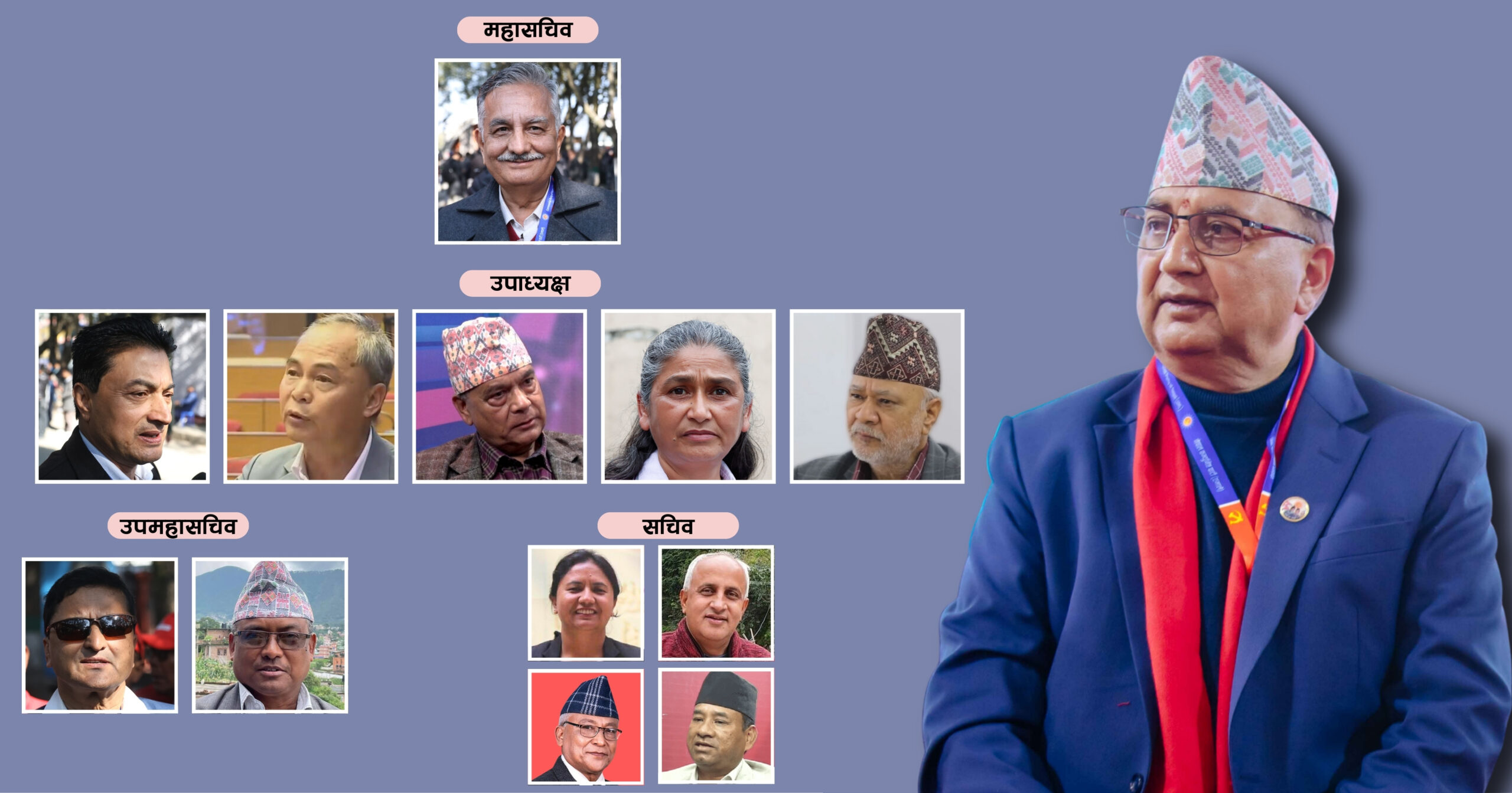 एमालेको नौ सचिव पदमा ओली समूहबाट भानुभक्त ढकाल, शेरधन राई, हिक्मत कार्की, राजन भट्टराई, महेश बस्नेत, खगराज अधिकारी, पद्मा अर्याल, यामलाल कँडेल र छविलाल विश्वकर्मा उम्मेदवार बनेका छन्। पोखरेलको समूहबाट सचिव पदमा रचना खड्का, विनोद ढकाल र कर्ण थापाको नाम तय भएको छ।