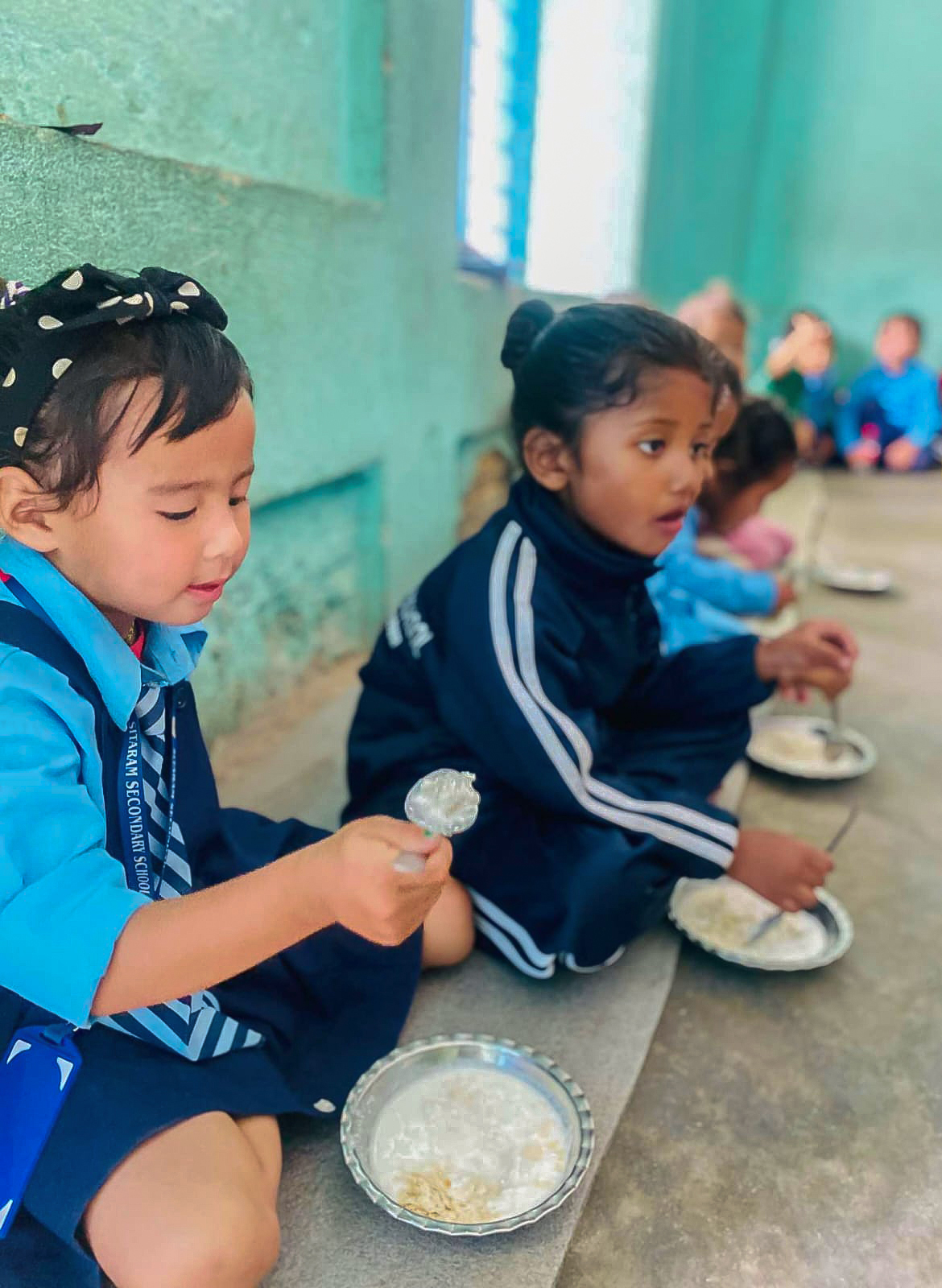 सीताराम माध्यमिक विद्यालयमा दिवा खाजा खाइरहेका विद्यार्थी