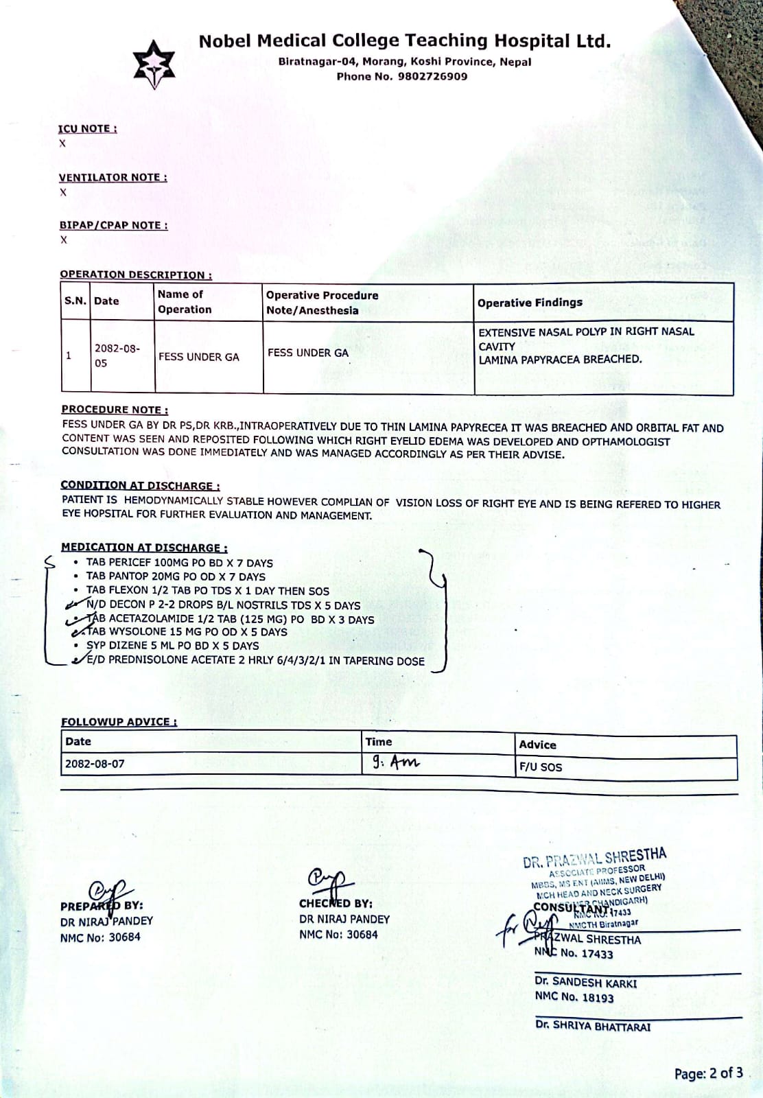 नोबेल मेडिकल कलेजले डिस्चार्ज गरेको पत्र