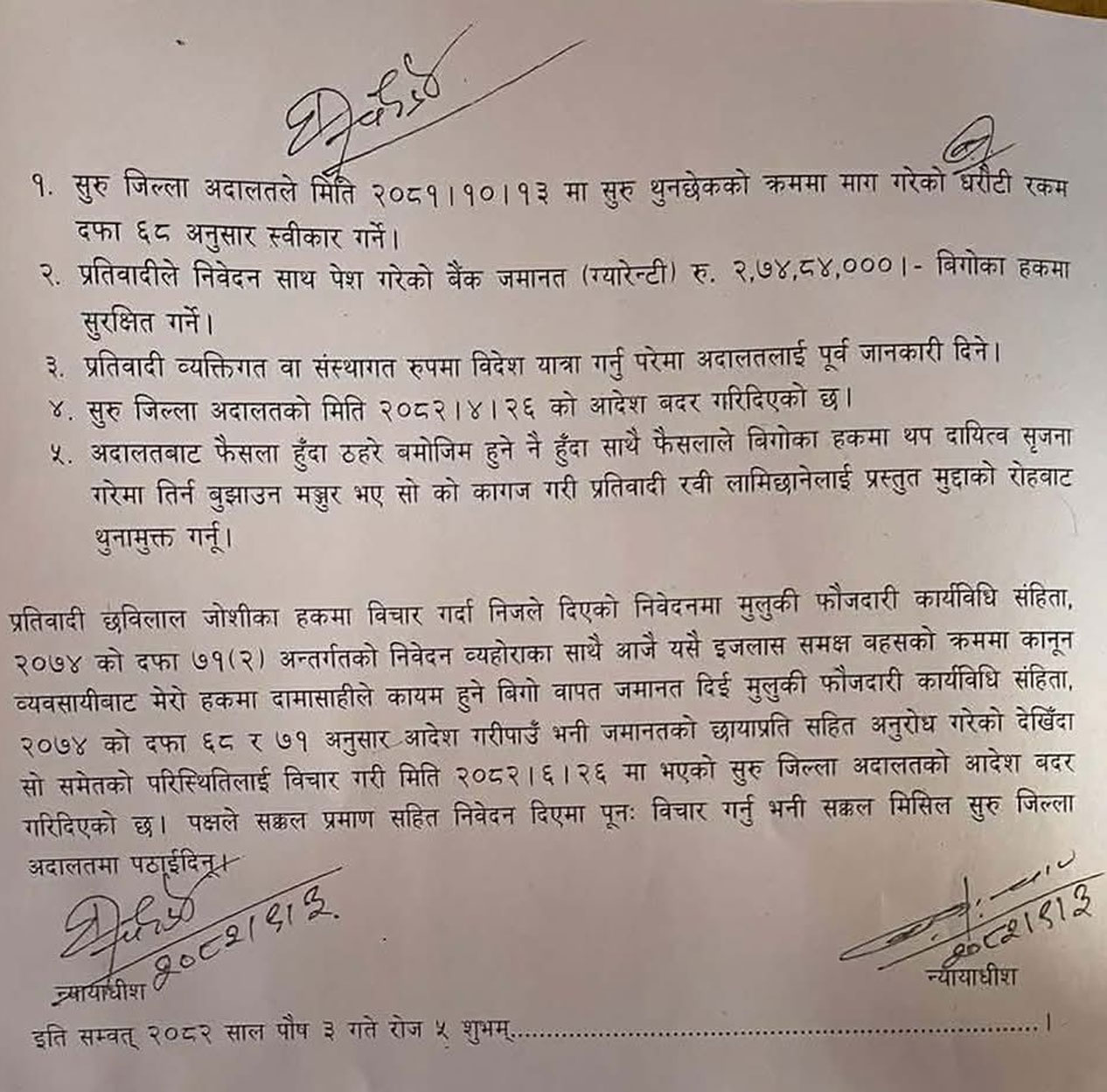 सहकारी मुद्दामा बिगो मागिए बमोजिम रकम सबैलाई भाग लगाउँदै आफ्नो भागमा पर्ने छुट्याएर प्रभु बैंकको म्यारेन्टीपत्र निवेदनसाथ लामिछानेले बुझाएका थिए।