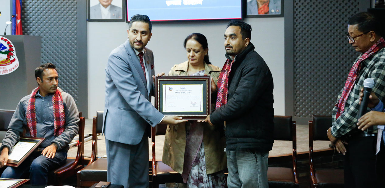 सञ्चार तथा सूचना प्रविधि मन्त्रालयमा आज (शुक्रबार) आयोजना गरिएको कार्यक्रममा मन्त्री जगदीश खरेलले नगद तथा सम्मानपत्र प्रदान गरे।