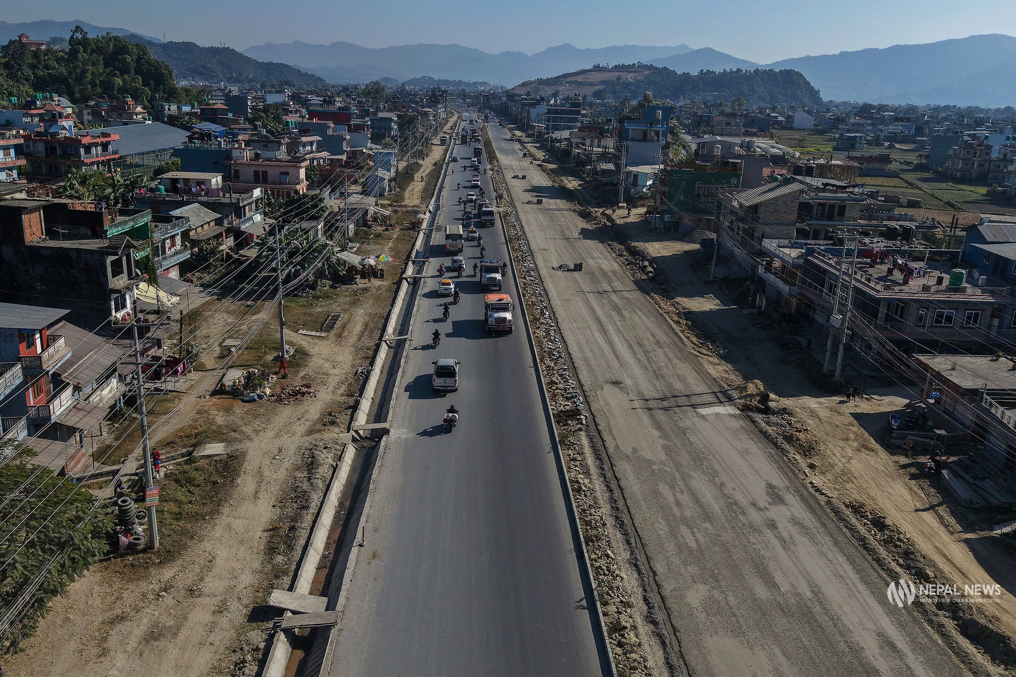 मुग्लिन। पोखरा सडक विस्तार अन्तर्गत पश्चिम खण्ड (जामुने–पोखरा) मा काम तीव्र गतिमा भइरहेको छ।