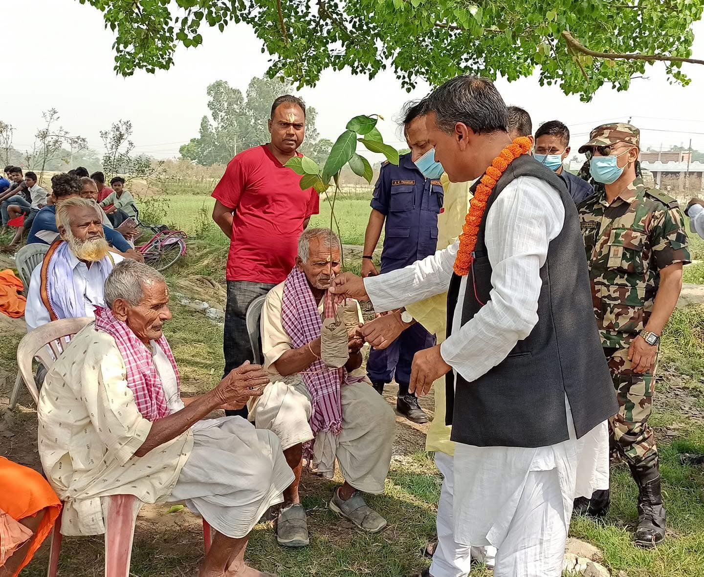 आफ्नो निर्वाचन क्षेत्रमा वृक्षरोपणका लागि बिरुवा वितरण गरिरहेका यादव