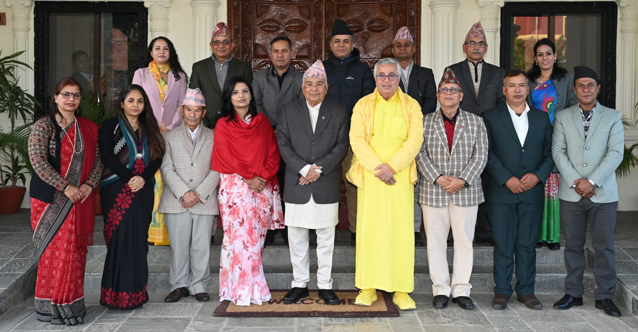 राष्ट्रपति भवन शीतलनिवासमा भएको भेटमा समाजका तर्फबाट संस्थापक सभापति कृष्ण पहाडी, संस्थापक सदस्य कृष्ण कँडेल, सभापति रेनुका पौडेल, निवर्तमान सभापति रामकृष्ण बराल, सल्लाहकार रामप्रसाद जोशी, कोषाध्यक्ष चन्द्रमणि बन्जारालगायतको सहभागिता रहेको उपनिर्देशक सरिता पौडेलले जानकारी दिइन्।