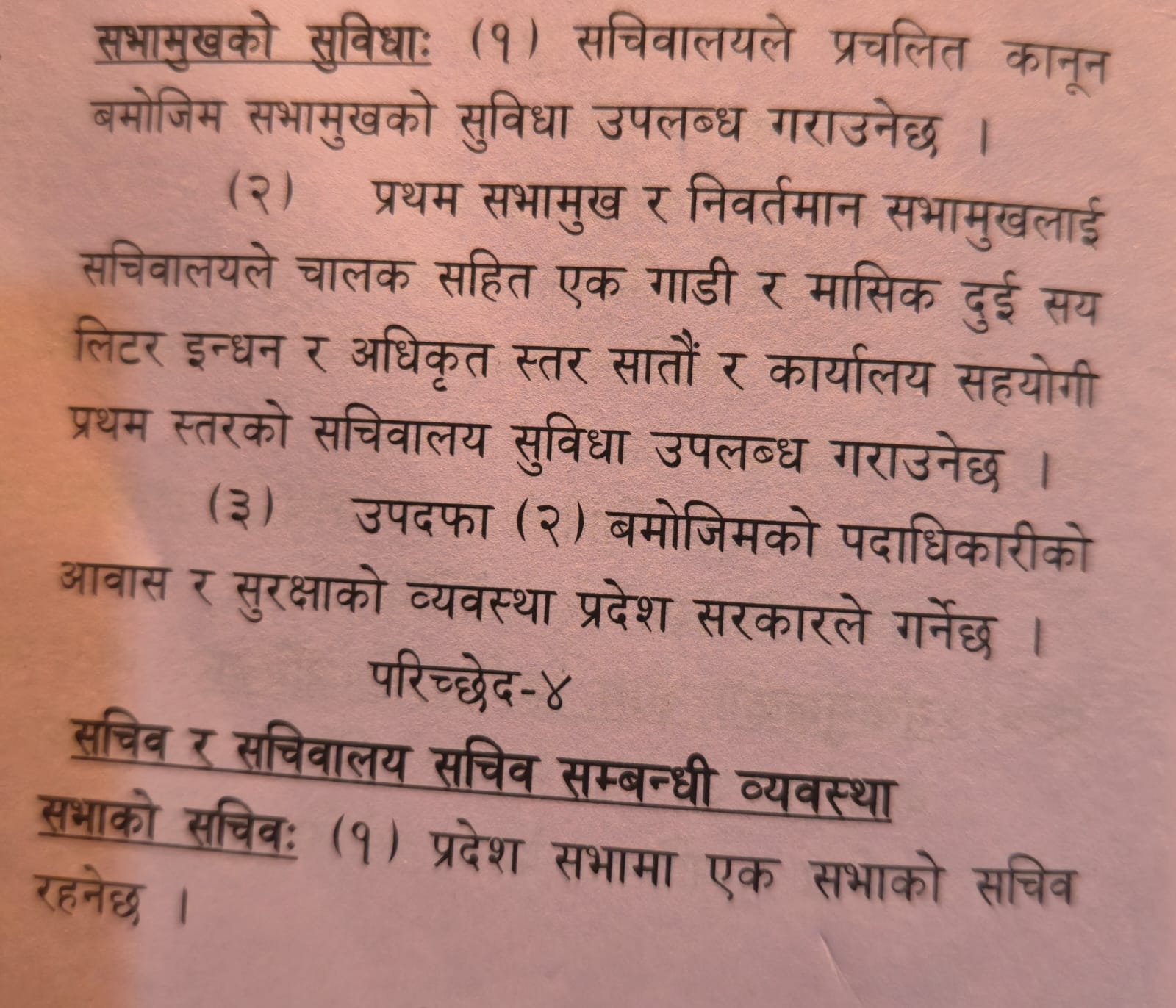 मधेस प्रदेशमा सभामुखको सुविधासम्बन्धी व्यवस्था
