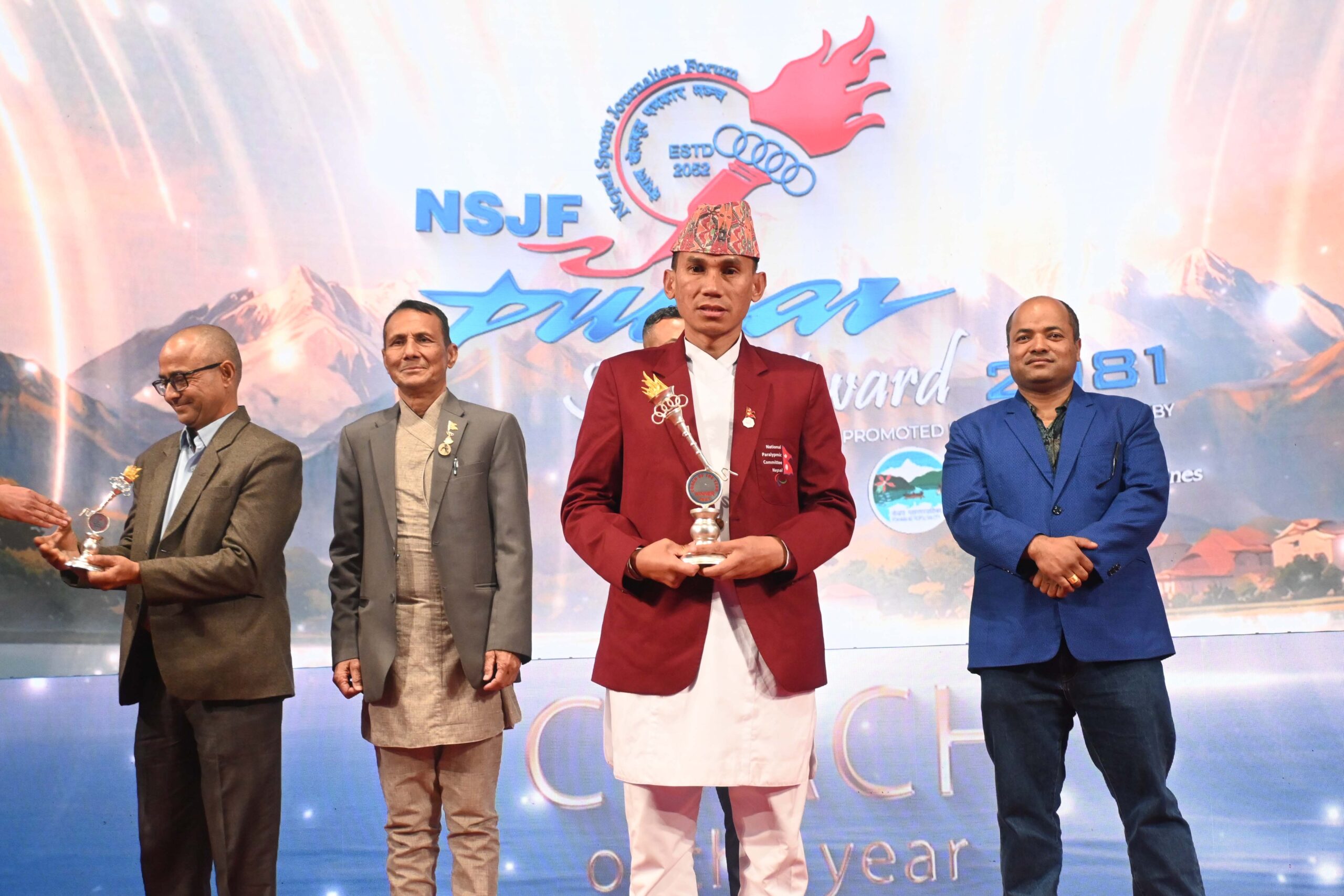 पारा तेक्वान्दो प्रशिक्षक कविराज नेगी लामालाई उत्कृष्ट प्रशिक्षकको अवार्ड पाउँदा एथ्लेटिक्सकी प्रभा आङदेम्बेले उत्कृष्ट पारा एथ्लेटको अवार्ड पाइन्। पूर्वखेलाडी खड्ग रानाभाटलाई लाइफटाइम एचिभमेन्ट अवार्ड र पलेशा गोवर्धनलाई विशेष अवार्ड ‘ट्रेलब्लेजर अफ दी इयर’ प्रदान गरियो।