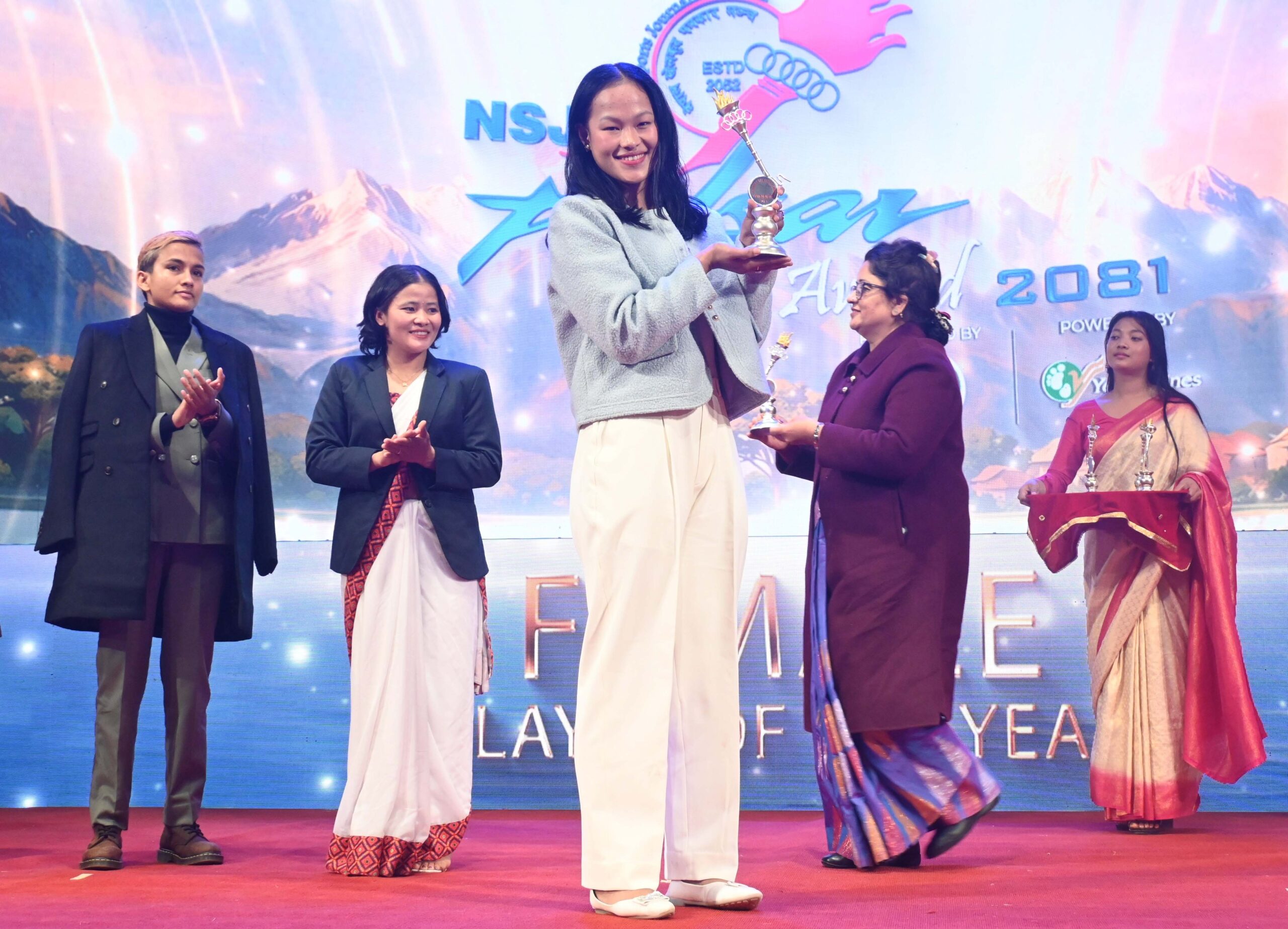 खो खो विश्वकपमा दुई ऐतिहासिक रजत पदक दिलाउने नेपालको महिला र पुरुष टिमलाई ‘टिम अफ दी इयर’ अवार्ड प्रदान गर्दा पिपल्स च्वाइस अवार्ड भलिबलका हिमाल सुनारी र उत्कृष्ट युवा खेलाडीको अवार्ड नेपाली महिला क्रिकेट टिमकी उपकप्तान पूजा महतोले हात पारे।
