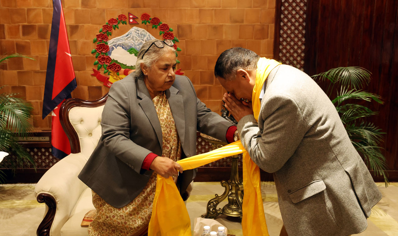 राजीनामा बुझाएपछि प्रधानमन्त्री सुशीला कार्कीसँग तस्बिर खिचाउँदै ऊर्जामन्त्री कुलमान घिसिङ । तस्बिरहरू : केशव थापा