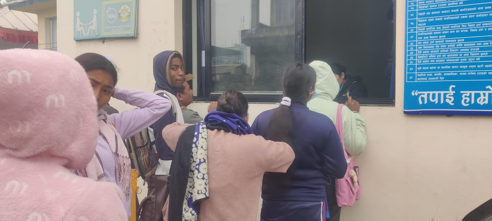 सामाजिक सञ्जालमा शुक्रबारदेखि आवेदन खुल्ने सूचना पाएकी रोशिका एक्लै थिइनन्, साथमा भाइ रोमन पनि थिए। ५२ किलोमिटरको सार्वजनिक बसको थकाइलाग्दो यात्रा पार गरेर उनीहरू विराटनगरस्थित जिल्ला प्रहरी कार्यालय मोरङको मूल ढोकामा आइपुग्दा बिहानको ११ बजिसकेको थियो। तर, त्यहाँको दृश्य देख्दा रोशिका अक्क न बक्क परिन्। उनीभन्दा अगाडि नै सयौँ युवायुवती जाडोको प्रवाह नगरी लामो लाममा बसिसकेका थिए।