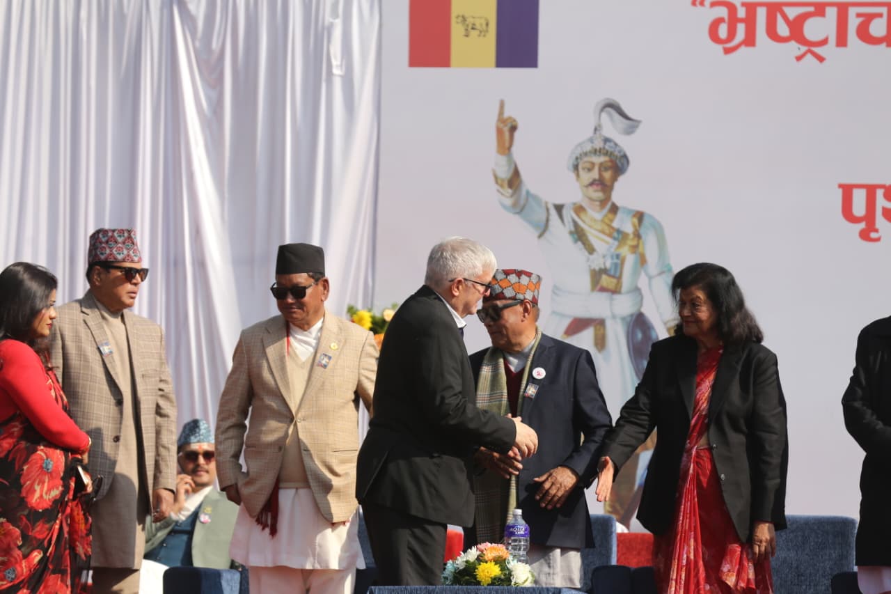 त्यसअघि पृथ्वीनारायणको ३०४औँ जन्मजयन्तीका अवसरमा रामचन्द्र पौडेलले राष्ट्रनिर्माताको सालिकमा पुष्पहार अर्पण गरेका थिए।