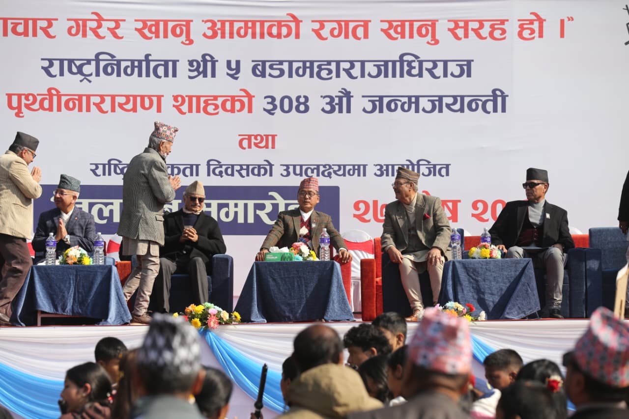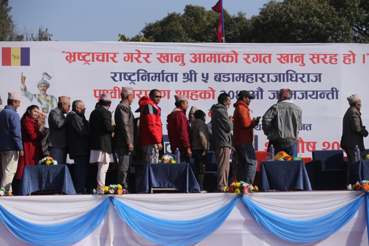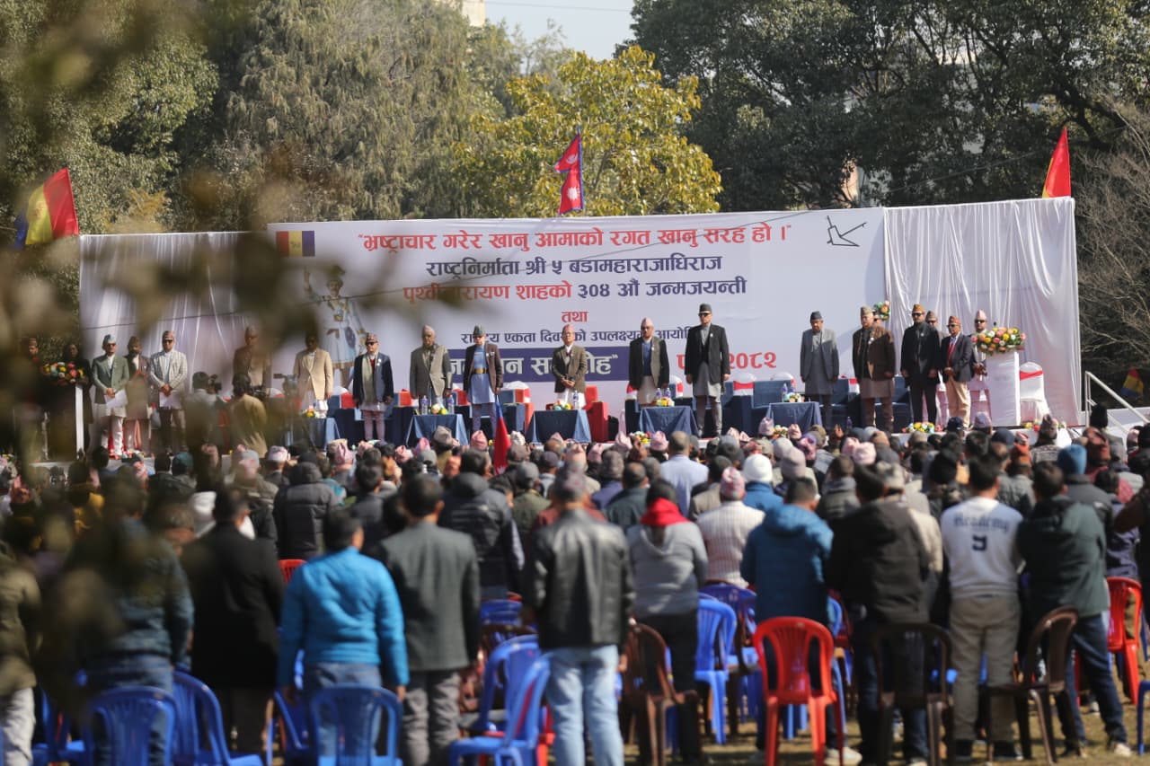 विसं १७७९ मा जन्मिएका राष्ट्रनिर्माता पृथ्वीनारायण शाहको ३०४औँ जन्म जयन्ती विभिन्न कार्यक्रम गरी देशैभर मनाइँदै छ । राप्रपाले गरेको चियापान समारोहमा प्रधानमन्त्री, विभिन्न राजनीतिक दलका शीर्ष नेता, पूर्वप्रधानमन्त्री र विभिन्न व्यक्तित्वलाई आमन्त्रण गरिएको छ ।