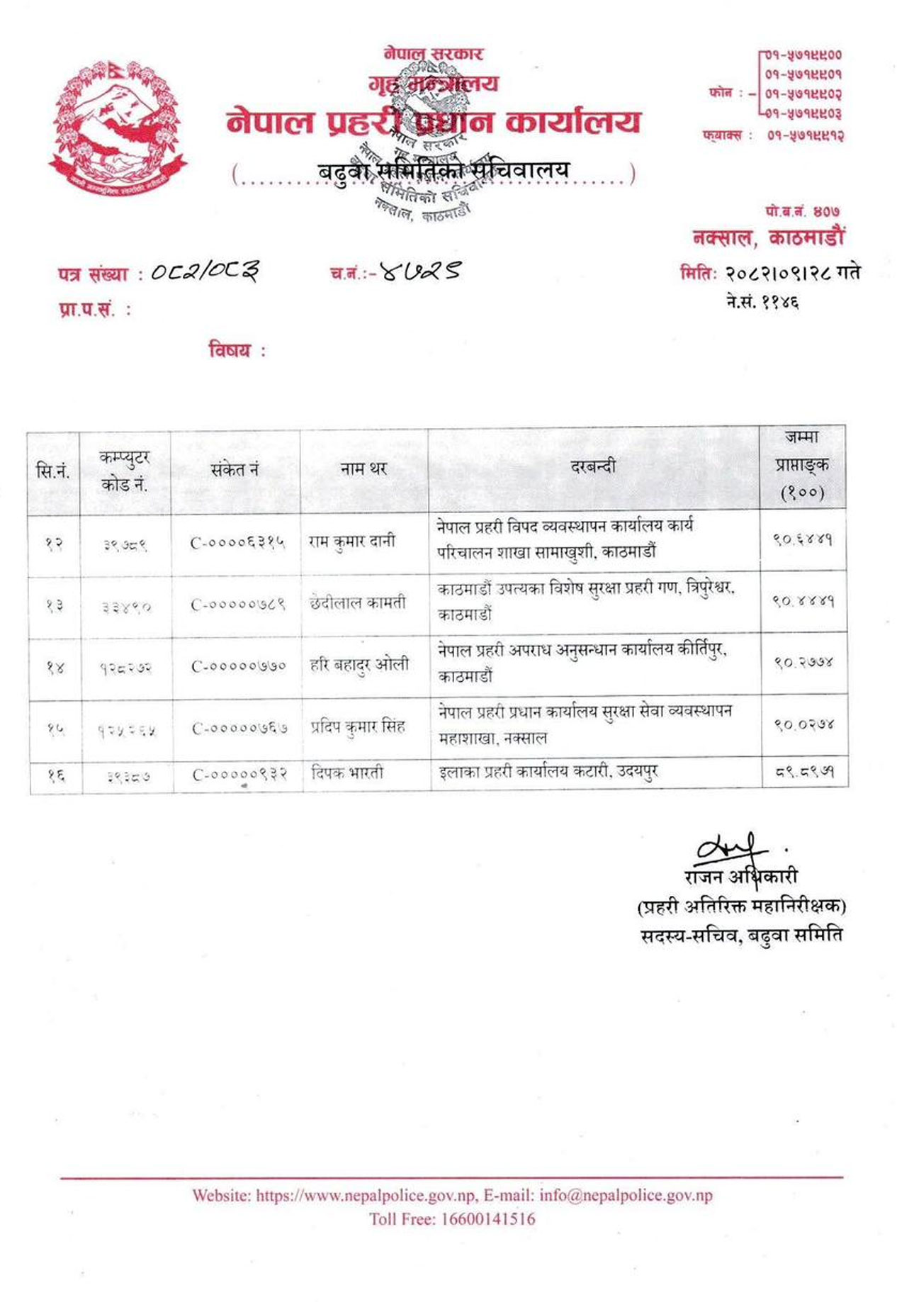 यसैगरी दिलीपकुमार गिरी‚ कुमारविक्रम थापा‚ बुद्ध श्रेष्ठ‚ मानबहादुर राई‚ मोहनबहादुर खाण‚ श्यामु अर्याल‚ भरत लामा‚ सागर बोहोरा‚ रामकुमार दानी‚ छेदीलाल कामती‚ हरिबहादुर ओली‚ प्रदीपकुमार सिंह र दीपक भारती छन्।