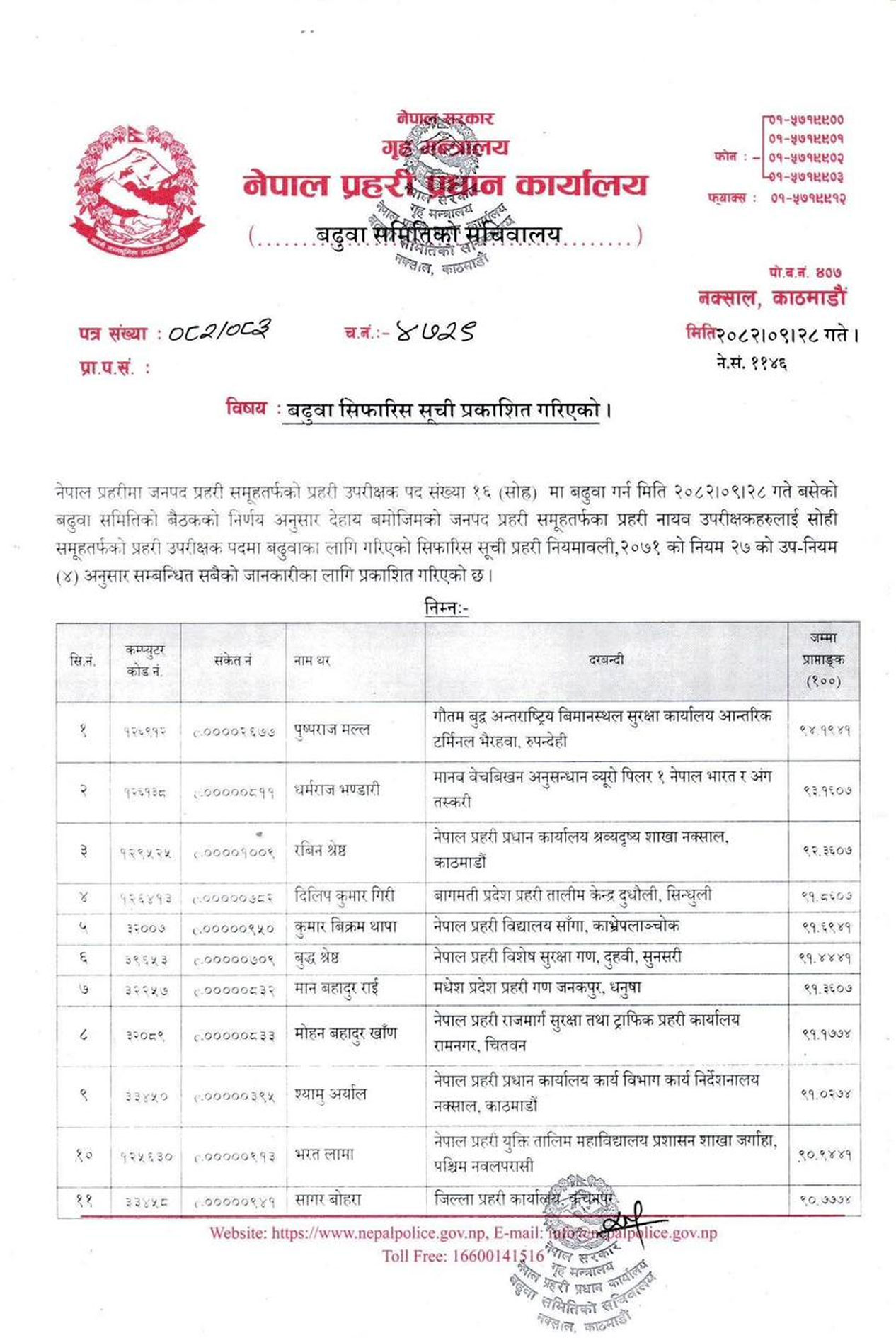 सिफारिसको पहिलो नम्बरमा पुष्पराज मल्ल‚ दोस्रोमा धर्मराज भण्डारी र तेस्रो नम्बरमा रविन श्रेष्ठ छन्।