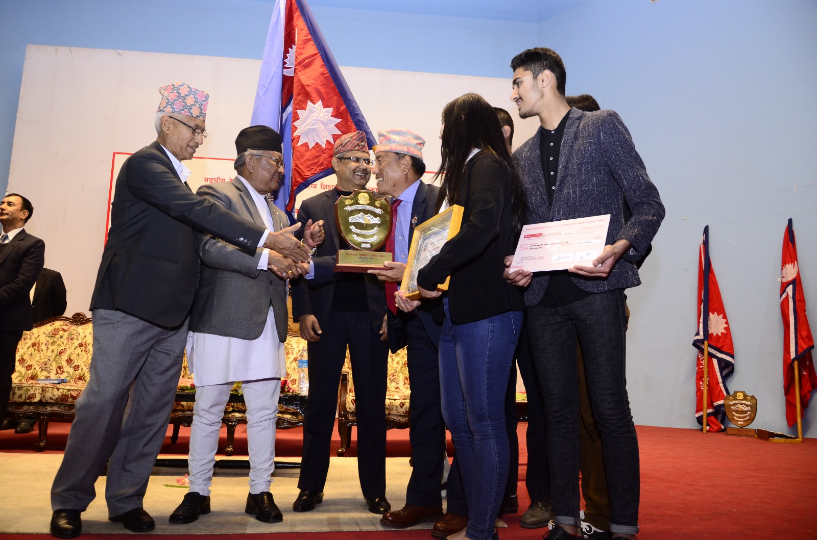 गोरखा स्कुलका संस्थापक केशरबहादुर आले सम्मान ग्रहण गर्दै