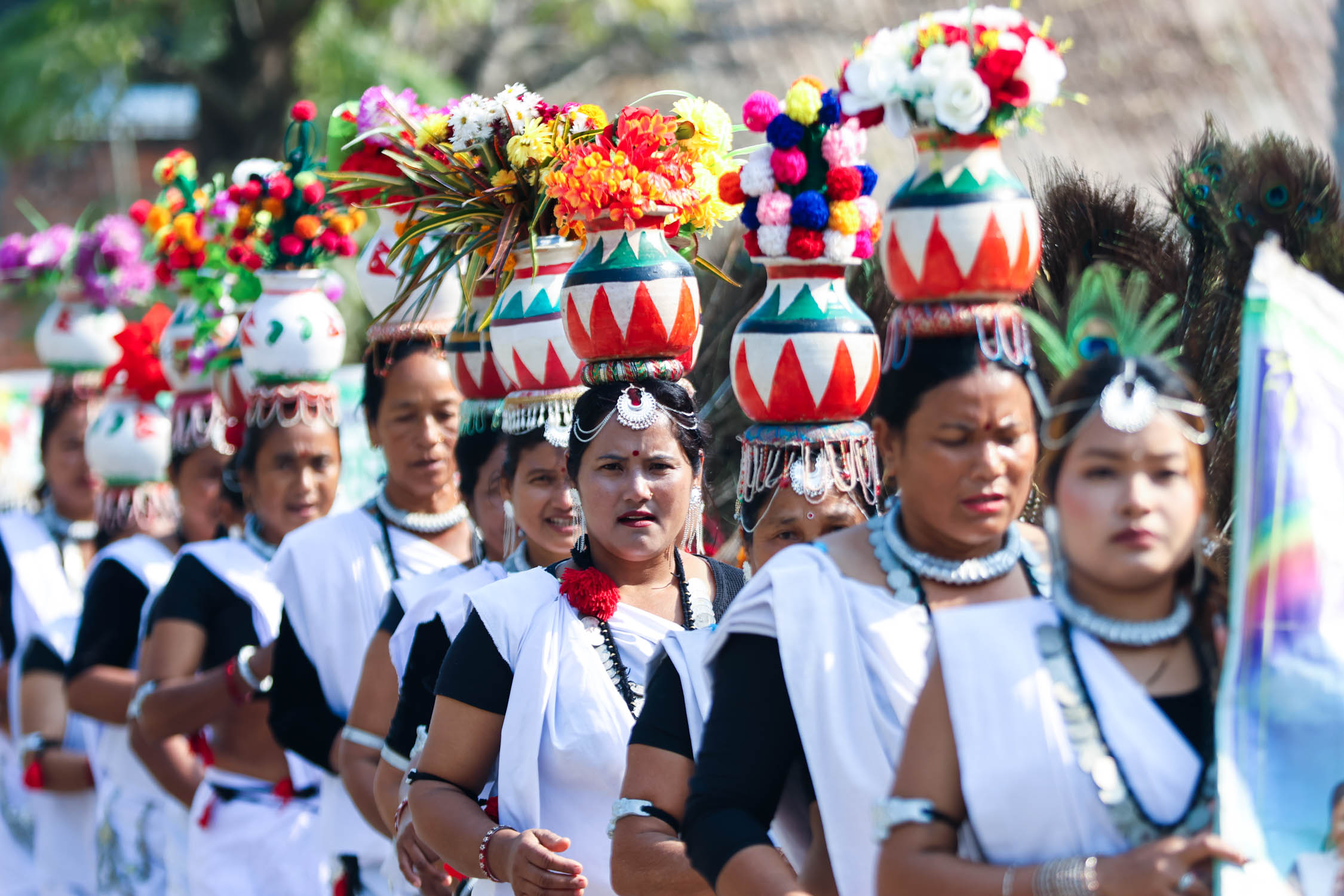 थारू सांस्कृतिक वेशभूषामा महिलाहरू। तस्बिर : नेपाल फोटो लाइब्रेरी