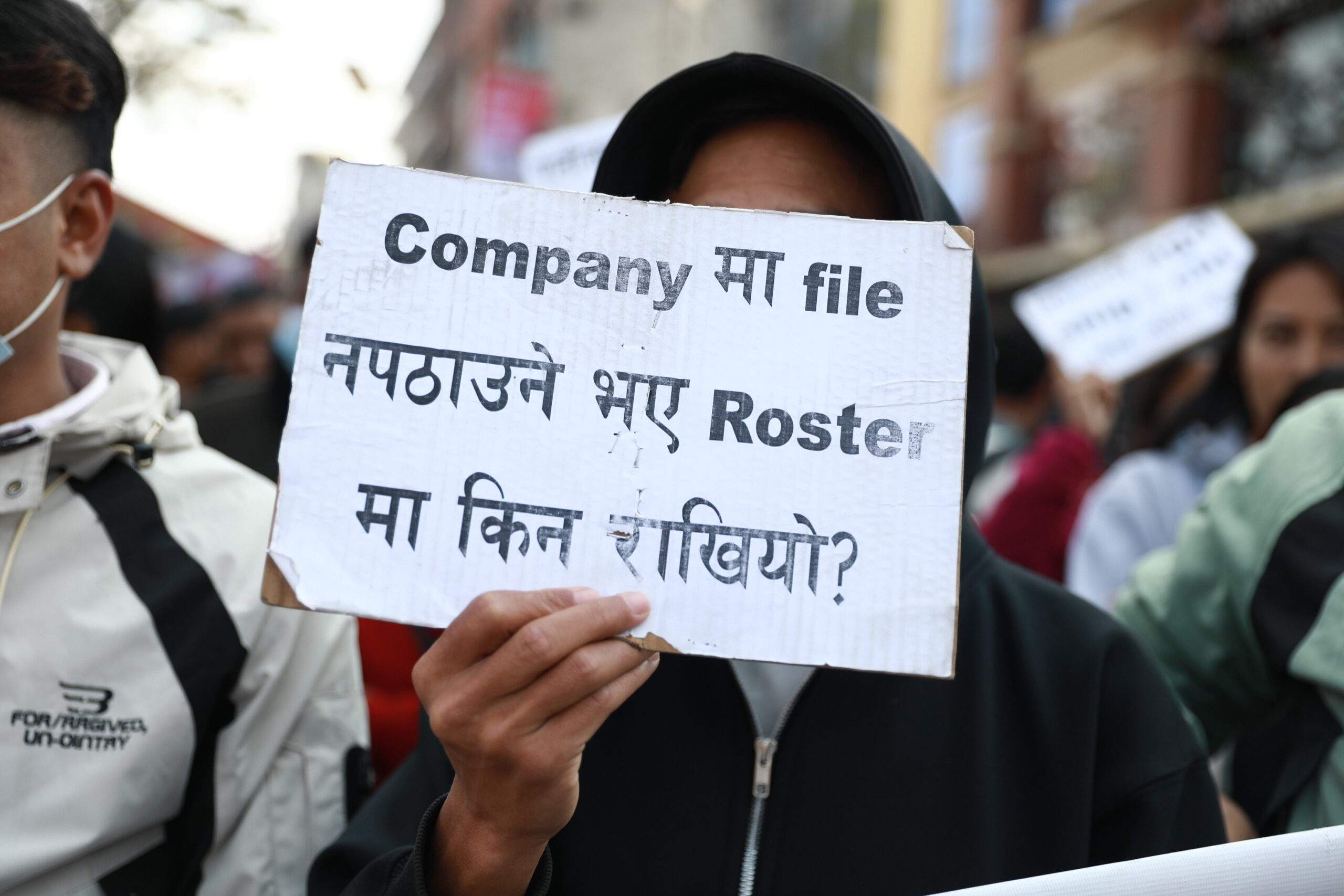 उनीहरूले प्लेकार्ड र ब्यानर बोकेर कोरिया जान पाउनुपर्छ भन्दै मंगलबार विरोध जनाए।