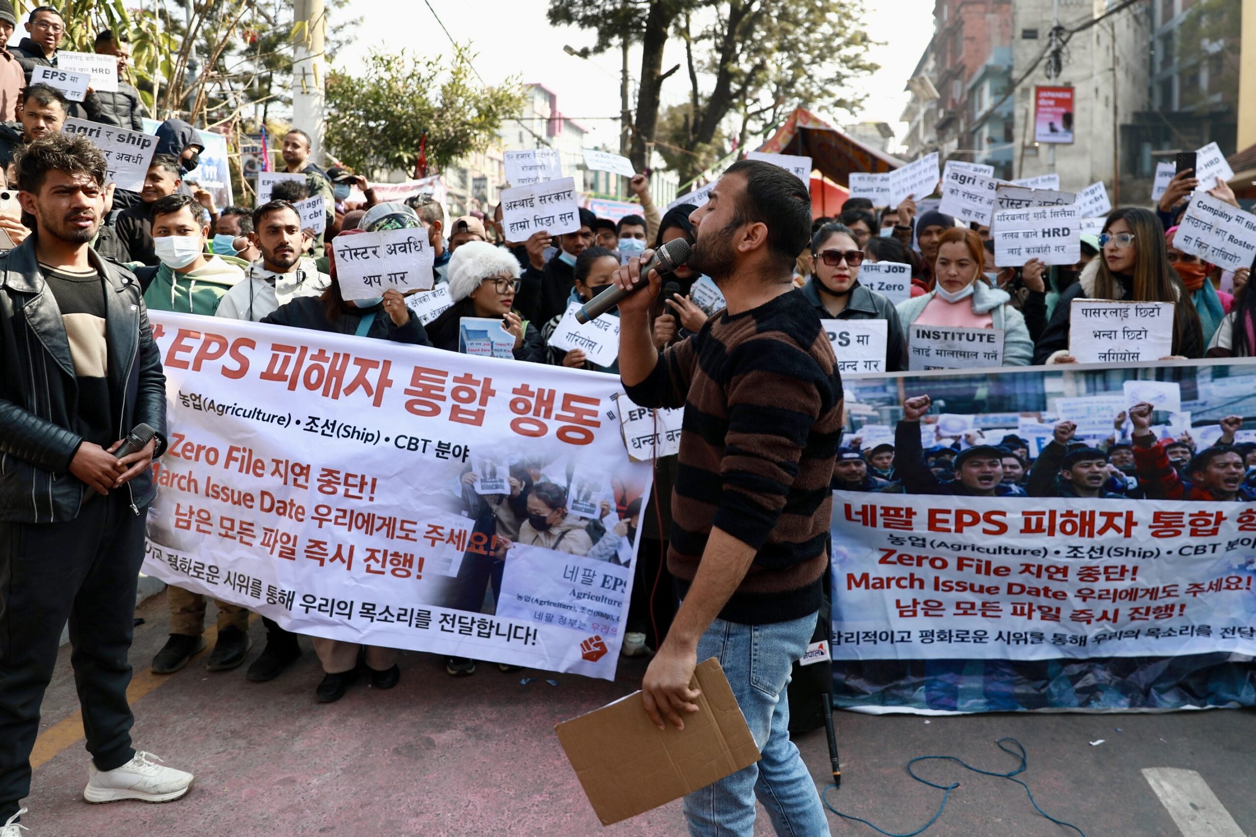 भाषा र सीप परीक्षण उत्तीर्ण गरेर पनि कोरिया जान नपाएपछि उनीहरू विगत सात महिनादेखि आन्दोलनमा छन्। हेर्नुहोस् थप तस्बिर :
