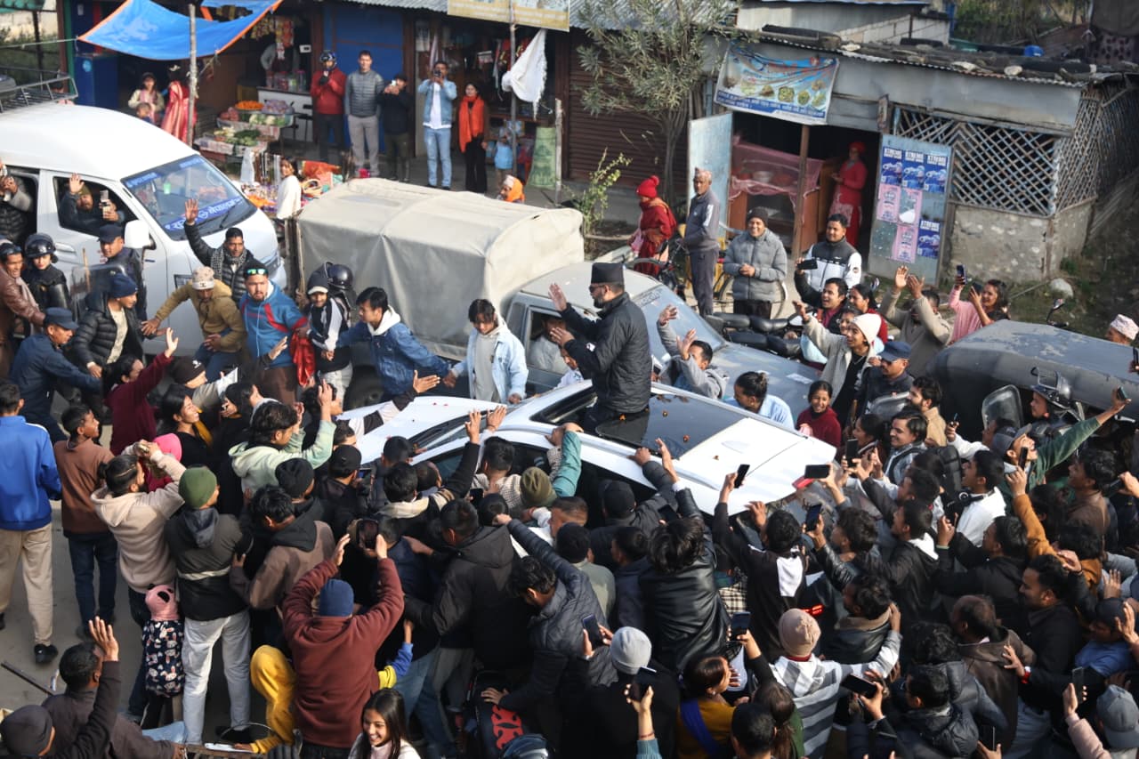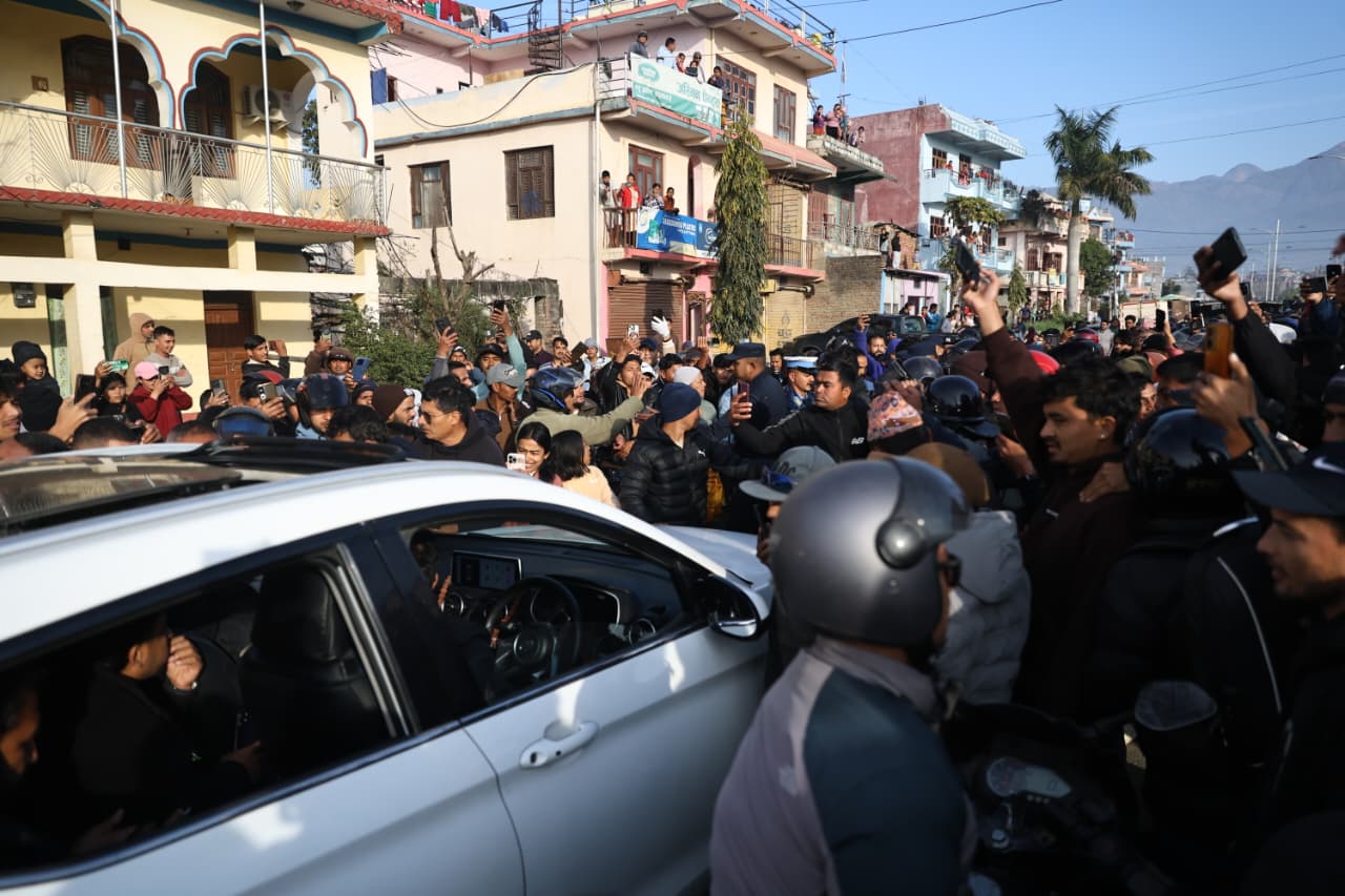 सुर्खेत । कर्णाली प्रदेशको चुनावी माहोल तताइरहेका रास्वपाका वरिष्ठ नेता बालेन शाह सुर्खेत पुगेपछि वीरेन्द्रनगरमा समर्थकहरूको उल्लेख्य भीड देखिएको छ। उत्साही कार्यकर्ता र स्थानीयको घेराबन्दीबीच बालेनले घन्टी बजाउँदै जनसमर्थनप्रति आभार व्यक्त गरे।