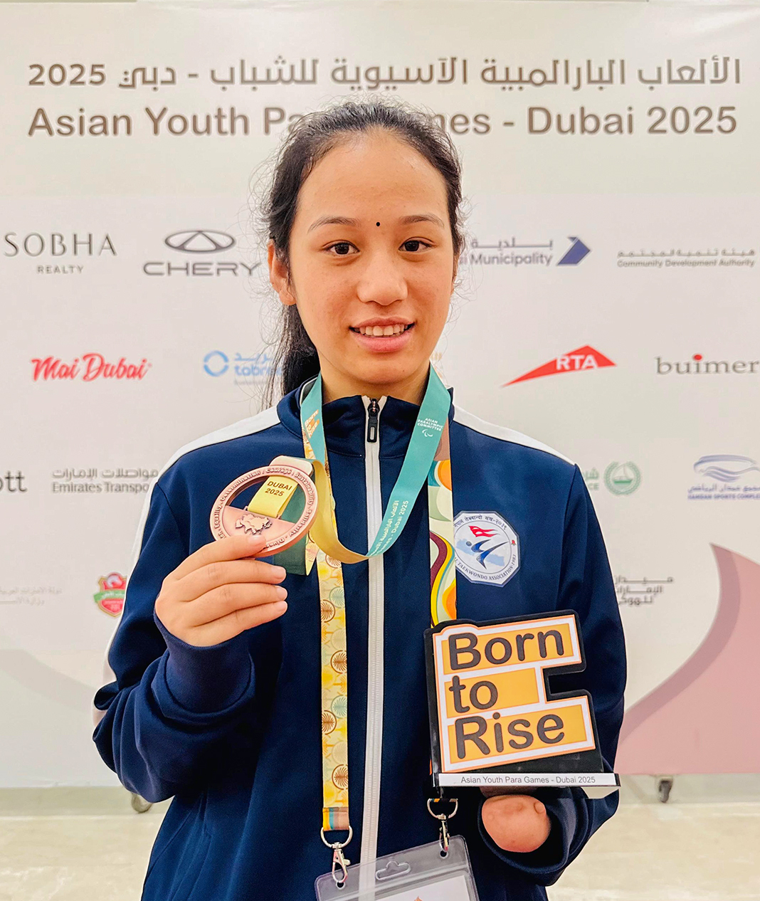 एसियाली युवा पारा खेलकुद – दुबईमा कांस्य पदकजितेपछि रेणु तामाङ। तस्विरः कविराज नेगी लामा